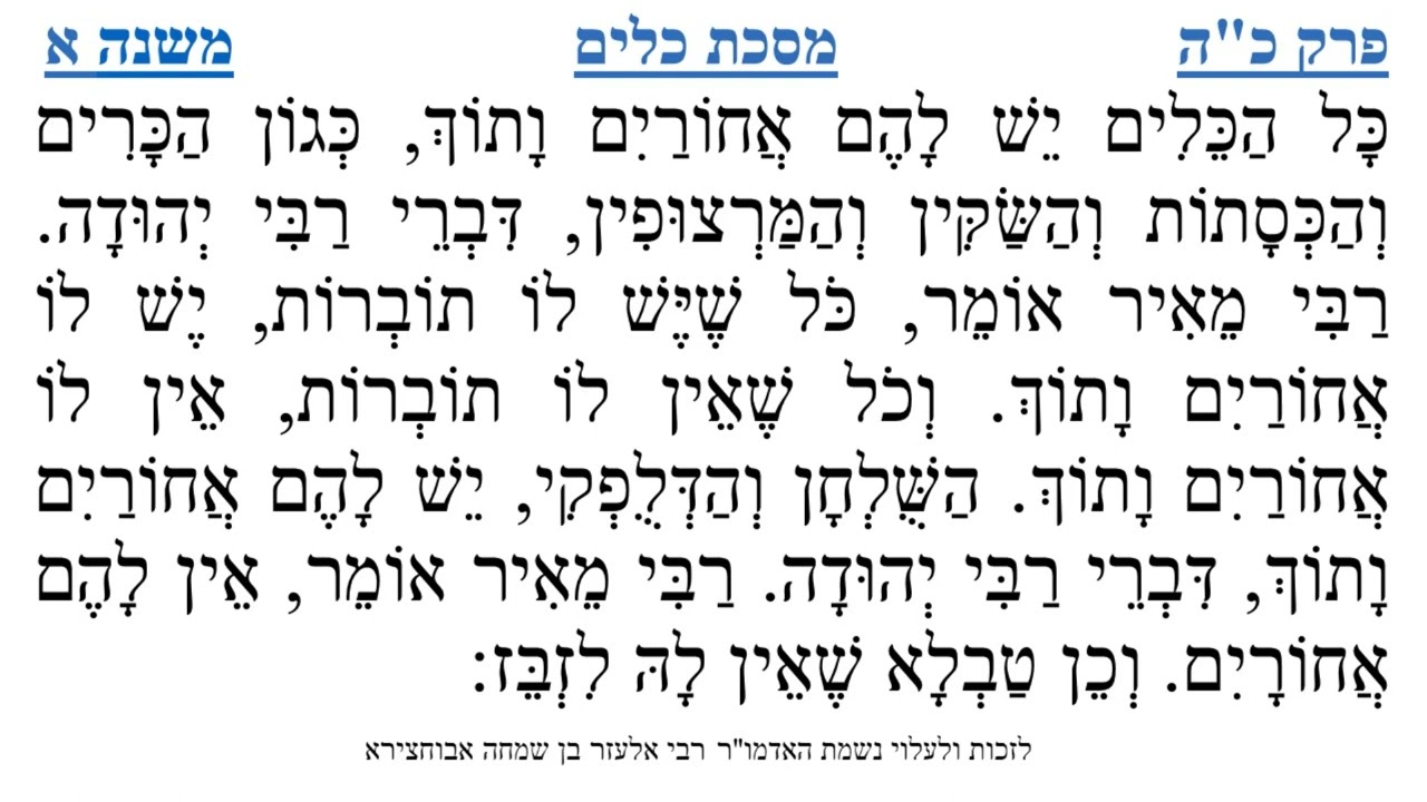 צפייה ישירה ב-YouTubeמסכת כלים פרק כ"ה משנה א
