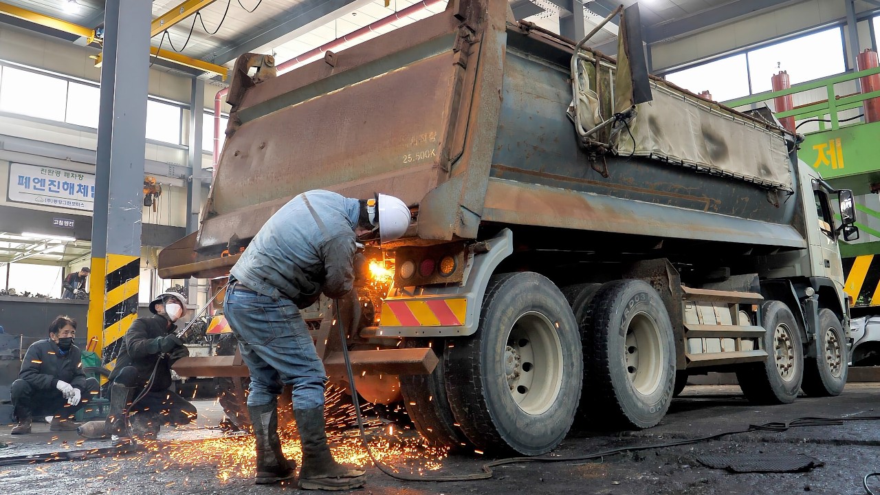 The Process of Completely Dismantling a Massive Dump Truck A Korean Scrapyard