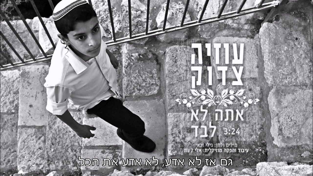 להזמנת אירועים ופרטים נוספים: אילן צדוק 052-3801234 ניהול אישי ואירועים פרטיים: יקיר ונה הפקות:0522-40-41-41 Contact Us: Y.V Productions Israel: 972522404141 yakirvanamusic@gmail.com הצטרפו לערוץ יוטיוב של עוזיה צדוק: http://bit.ly/1IVKSGx הצטרפו לעמוד פייסבוק של עוזיה צדוק: http://on.fb.me/1O324xy הצטרפו לעמוד אינסטגרם של עוזיה צדוק: http://bit.ly/1mXQZHF הפקת השיר: אף די די פרודקשיין בע"מ Production by : FDD Production LTD | ישראל: 03-6165628 | מייל : info@fdd.co.il לאחר שנה מלאה ועמוסה שבה שר והופיע מעל כל במה אפשרית, מוציא ילד הפלא של ישראל, עוזיה צדוק, סינגל חדש ויפיפה בשם "אתה לא לבד". בשונה מהסגנון שאפיין אותו בסינגל "הלילה כאן לשמוח" שהיה רצועה ים תיכונית מקפיצה, הפעם חוזר עוזיה לסגנון השקט והמרגש שאפיין אותו בשיר 'כוכב מאיר' שהוציא לעילוי נשמת מרן זיע"א וזכה להצלחה מסחררת בכל העולם. לשיר הזה ניגש עוזיה ממקום בוגר ומנוסה יותר ולאחר שקבע את מקומו כאחד הכוכבים העולים בתעשיית המוזיקה הדתית בישראל. את המילים והלחן כתב גילי זכאי ואלי קשת עיבד והפיק מוזיקאלית. מילים: בית א': גם כשאגדל לא תהיה לי תשובה לא אבין את היום בטח לא את מחר אם יהיה לי מזל אספר לילדיי מה שאבא מזמן כבר לחש באוזניי אל תדאג ילד אל תדאג אתה לא לבד פזמון: החיים עוברים מהר מדי חולפים ימיי חולפים שיריי רק אתה נשאר כאן לידי שומר עליי מחזיק אותי החיים עוברים מהר מדי חולפים ימיי חולפים שיריי רק אתה נשאר כאן לידי ומחזק את נשמתי בית ב': גם אם אלמד אלגום את ספריי מחכמה אשתכר יחלפו נעוריי גם אז לא אדע לא אדע את הכל זה מה שאמא ניסתה להסביר לי בלי קול