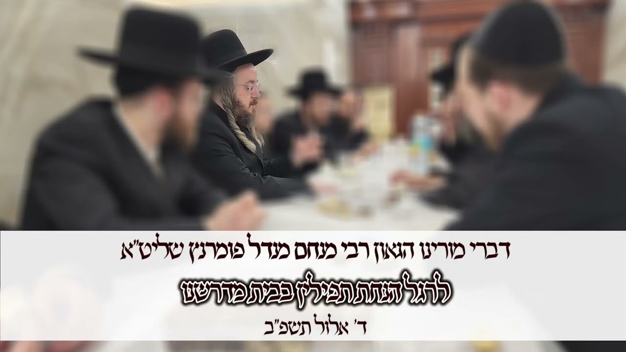 דברי מורינו הרב הגאון רבי מנחם מנדל פומרנץ שליט"א לרגל הנחת תפילין בבית מדרשנו ד' אלול תשפ"ב