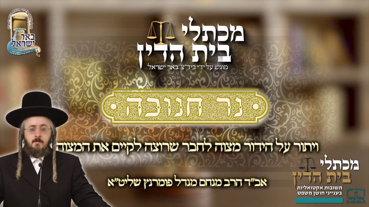 הרב מנחם מנדל פומרנץ | מכתלי בית הדין - חנוכה • ויתור על הידור מצוה לחבר שרוצה לקיים את המצוה •