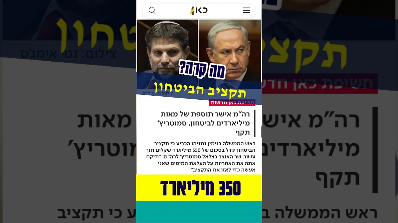 חדשות : רה"מ בנימין נתניהו אישר תוספת של מאות מיליארדים לביטחון, סמוטריץ' תקף.