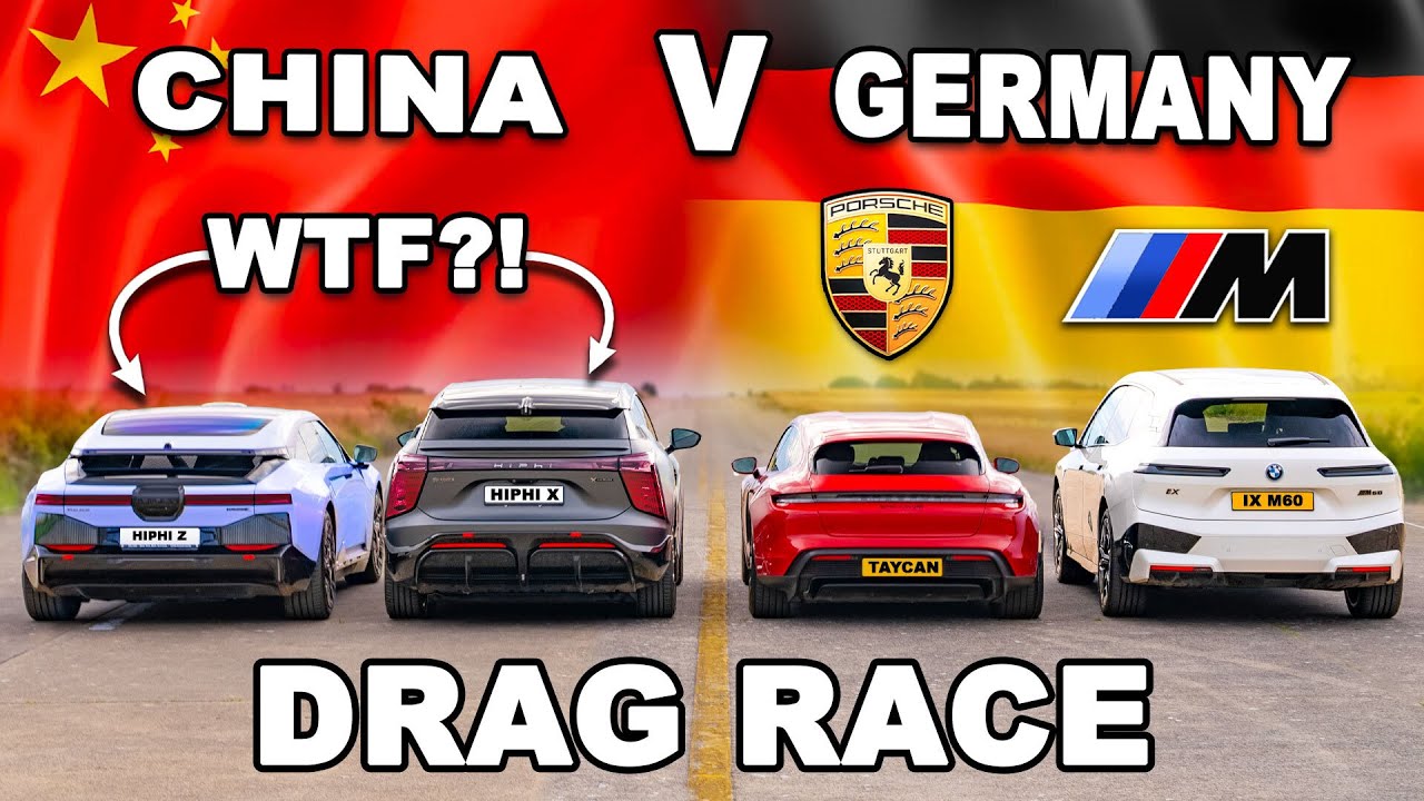 It’s time for an almighty Germany vs. China electric car showdown! We’ve got our hands on the Human Horizons HiPhi Z & HiPhi X, and they’re going up against the Porsche Taycan GTS and BMW iX M60! The question is, which is the quickest? Well, let’s take a look at the stats. Starting with the HiPhi Z, it comes equipped with two electric motors that can put down 672hp and 820Nm. All that power means it’s pretty heavy, mind, coming in at 2,539kg, and it costs around £90,000. Alongside it we have the Porsche Taycan GTS. It also comes with two electric motors, but it’s down on power compared to the HiPhi, able to produce 598hp and 850Nm of torque. It’s the lightest car here, at 2,310kg, but it’s also more expensive than the HiPhi Z, coming in at around £111,000. Then we get to the SUVs. Starting with the HiPhi X, it comes with two electric motors that can produce 598hp and 820Nm. It tips the scales at 2,580kg, and it has a price tag of around £93,000. Then finally we come to the BMW iX M60. It’s the heaviest car here (just!) at 2,584kg, but it also has a boatload of power, with its two electric motors producing 619hp and 1,100Nm! But not only is it the heaviest, it’s also the most expensive, costing around £123,000! So will China come out on top? Or will it be a clean sweep for the Germans? There’s only one way to find out… LET’S RACE! carwow Electric Car Homepage: https://bit.ly/carwow-EV-Homepage Sell your car with carwow: https://bit.ly/Buy-Sell-WOW