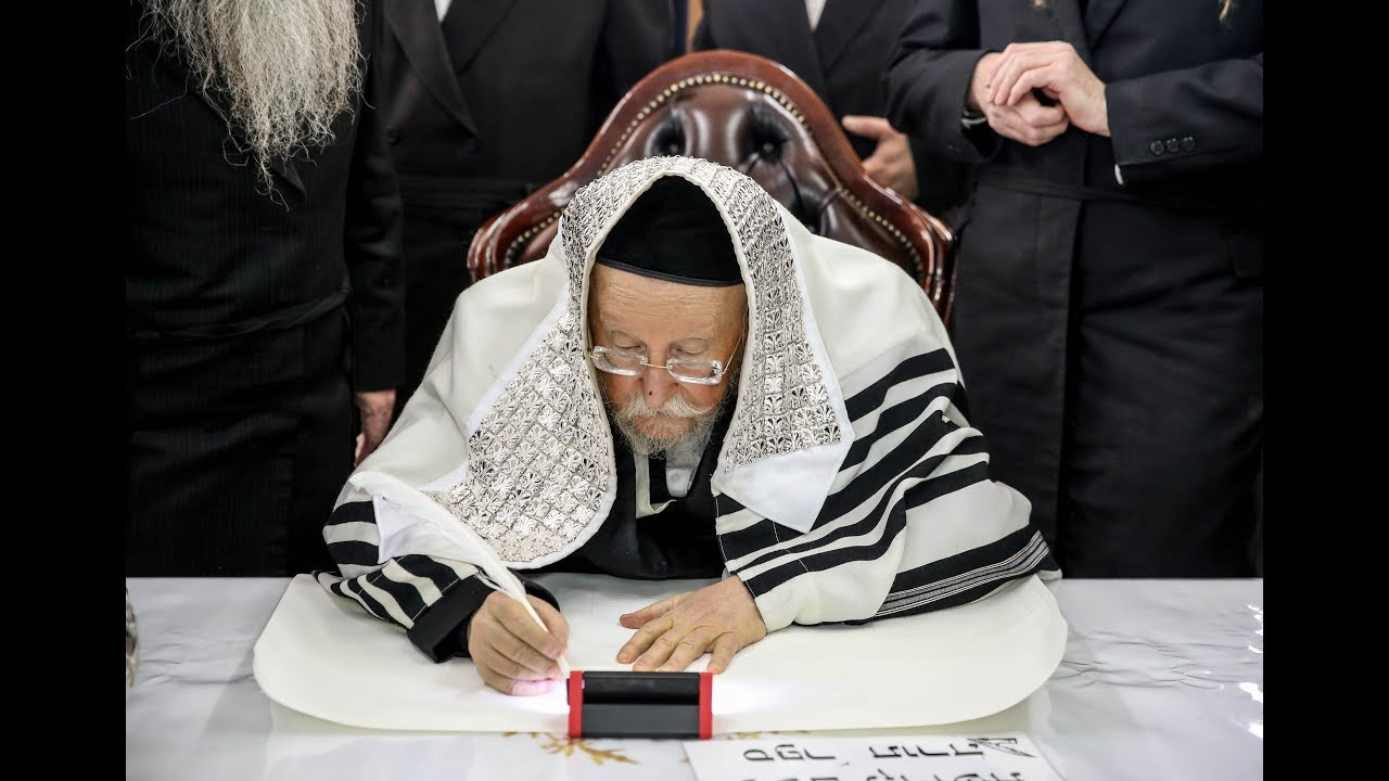 צפייה ישירה ב-YouTubeהאדמו''ר מביאלא בכתיבת אותיות ספר תורה