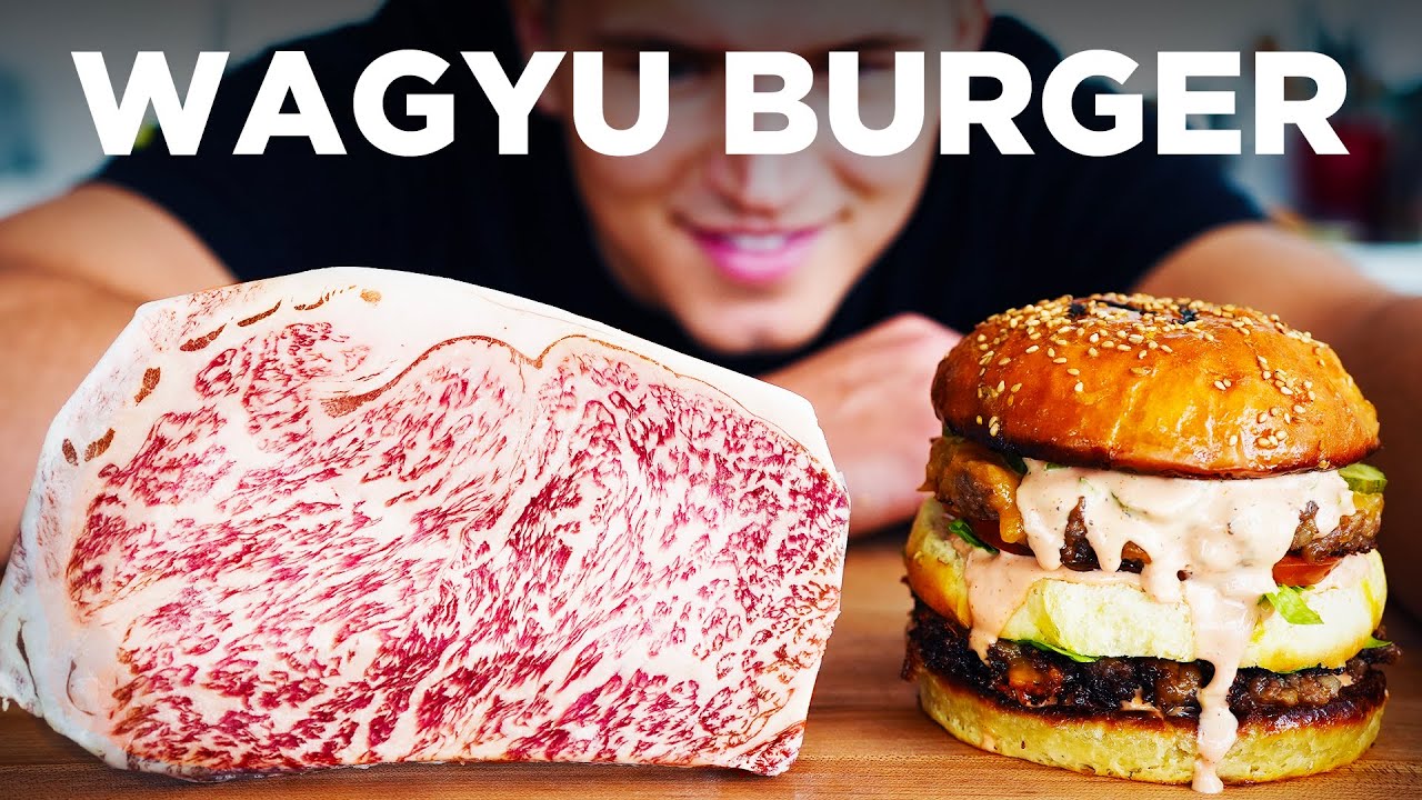 You won't believe how this wagyu burger turned out... Ingredients: 1 cup + 2 tbsp warm water 2 tbsp active dry yeast 1/3 cup vegetable oil 1/4 cup sugar 1 egg 3 cups AP flour Salt (to taste) 16oz Wagyu (or other) beef 1 cup white vinegar 1 cup water Salt (to taste) 2 small cucumbers 1/2 cup mayonnaise 3 tbsp ketchup 1/4 cup chopped pickles Hot sauce (pinch) Salt + Pepper Lettuce (optional) Tomato (optional) Bacon (optional) 1. To make buns, combine water and yeast. Whisk. 2. Add vegetable oil and sugar, and whisk again. Let this sit for 5 minutes. 3. Add egg, flour, and salt in mixing bowl and knead about 3-5 minutes until smooth and elastic. 4. Drop dough onto floured board and cut into six balls. 5. Roll into small balls and sit on greased tray. 6. Let dough rest several minutes and grind wagyu. 7. After resting dough balls for 10 minutes, paint them in egg wash. 8. Bake at 425 Fahrenheit (218 C) for 10 minutes or until golden brown. 9. For pickles, add vinegar, water, and salt to small saucepan and heat until sugar dissolved. Pour over sliced cucumber and let sit 15 minutes. 10. Egg wash buns again and add sesame seeds. Place back in oven until seeds are set. 11. For special sauce, combine mayo, ketchup, pickles, hot sauce and S+P. 12. Sear beef in ring molds to get perfect shape, then add cheddar and steam until melted. 13. Slice and toast buns. 14. Assemble burger to your liking and enjoy. Subscribe to help us become the #1 food channel :) ╔═╦╗╔╦╗╔═╦═╦╦╦╦╗╔═╗ ║╚╣║║║╚╣╚╣╔╣╔╣║╚╣═╣ ╠╗║╚╝║║╠╗║╚╣║║║║║═╣ ╚═╩══╩═╩═╩═╩╝╚╩═╩═╝ Follow for more: https://www.youtube.com/@NickDiGiovanni https://www.youtube.com/@NicksKitchen https://www.instagram.com/nick.digiovanni https://www.facebook.com/nick.digiovanni https://www.tiktok.com/@nick.digiovanni