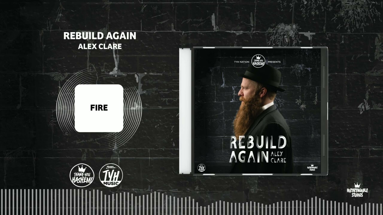 The Sfas Emes says that one of the terms for the Jewish nation is Am Yisorel. The root of the word Am is the the same as the word Omamot- to smolder. The nature of Am yisroel is at times we may appear to be a cold, and lifeless like an old coal in the fire. But when we have the right motivation, wind or heat suddenly we flare up. The fire, the the song is referring to is the Aish pnimi, the fire inside. Sometimes it appears that it’s gone out, but it’s always there, it just needs the right fuel to get it going For bookings: +1 (347) 680-4862 bookings@gmail.com TYH Nation Presents REBUILD AGAIN Alex Clare Rising Together, Stronger Than Ever – The Soundtrack of Rebuilding Written and Composed by Alex Clare Produced and Arranged by Mendy Portnoy Guitars: Noam “Hargol” Burg Mandolin: Noah Solomon Backing Vocals: Alex Clare, Mendy Portnoy and Olu (Mr Mate) Mixed by Yaron Saffer Mastered By Greg Calbi
