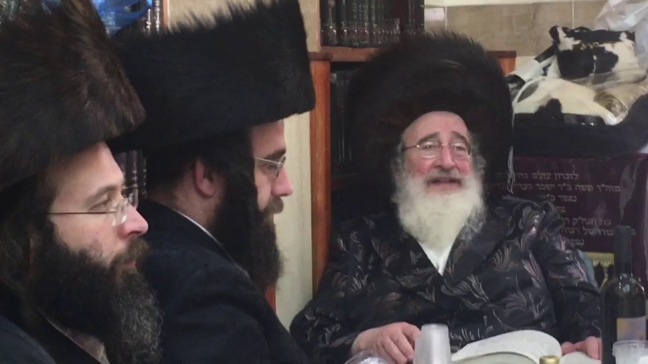 האדמו"ר מספינקא עם הנגיד הרבני ר' בעריש ברונשטיין שליט"א בשירת "היה עם פיפיות", שושן פורים תש"פ