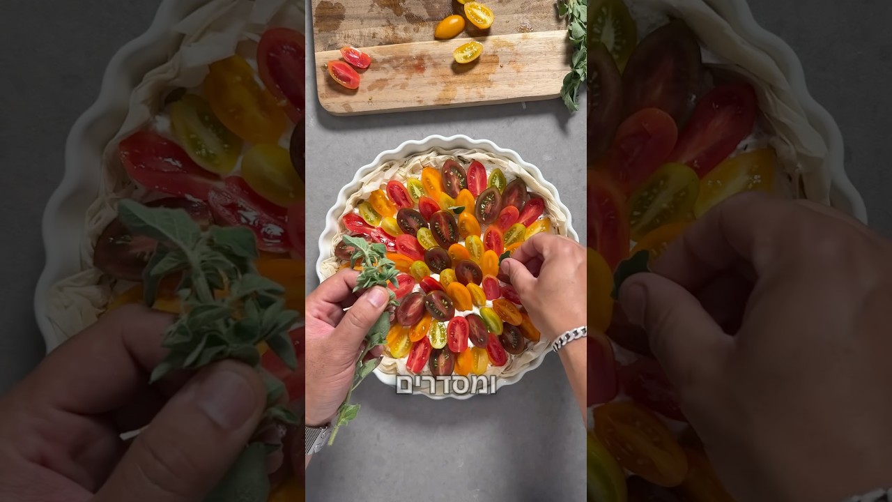 תוכן במימון משק יעקבס גאלט פטה עיזים ועגבניות חגיגי אך קל להכנה אז הצטרפתי לנבחרת של משק יעקבס, כל כך הרבה גבינות משגעות וטעימות שאפשר להשתגע, אז למתכון הראשון בחרתי בפטה עיזים, זה לא סוד שזו אחת הגבינות האהובות עלי מרקם חלומי מליחות מעודנת וטעימה ובשילוב עם עגבניות זה כבר עולם אחר אז קבלו מתכון שכל אחד יכול להכין בלי מאמץ. מצרכים: - 8 דפי בצק פילו - 100 גרם חמאה מומסת למריחת הדפים - 10 עגבניות שרי צהובות - 10 עגבניות שרי ירוקות - 10 עגבניות שרי כתומות - 10 עגבניות שרי אדומות - 2 גבעולי אורגנו טרי לתערובת הגבינות: - 250 גרם פטה עיזים משק יעקבס - 100 גרם גבינת שמנת טבעית משק יעקבס - 1 ביצה - רבע כפית מלח - רבע כפית פלפל שחור - כף אורגנו טרי קצוץ גס וגם: - ביצה ושומשום למריחה אופן ההכנה: - בקערה מערבבים את הפטה גבינת השמנת, הביצה המלח הפלפל והאורגנו טרי - פורסים על השיש דף פילו מורחים בחמאה שממיסים 30 שניות במיקרוגל, שמים עוד דף בצורה אנכית ככה 6 דפים לייצר עיגול גדול שיהיה אפשר לקפל אחר כך - לוקחים תבנית עגולה , איזה שיש לכם זה באמת לא משנה , שמים במרכז ומתחילים לקפל את השוליים כדי לייצר מסגרת - מניחים את דפי הפילו בתבנית ומעבירים את תערובת הגבינות לאמצע ומסדרים כך שיהיה בצורה אחידה עד הדפנות - חותכים את עגבניות השרי לחצי - מסדרים את העגבניות בצורה מעגלית עד המרכז, שמים מעט מלח גס על העגבניות , מזלפים טיפונת שמן זית על העגבניות. - מוסיפים כמה עלי אורגנו טרי - מורחים ביצה בשוליים ומקשטים בשומשום - מחממים תנור ל 180 מעלות - מכניסים את הגאלט ל35-40 דקות - בתאבון #גאלט #גאלטירקות #יאבלולושמבלולו #fetta #יאבלולושמבלולו
