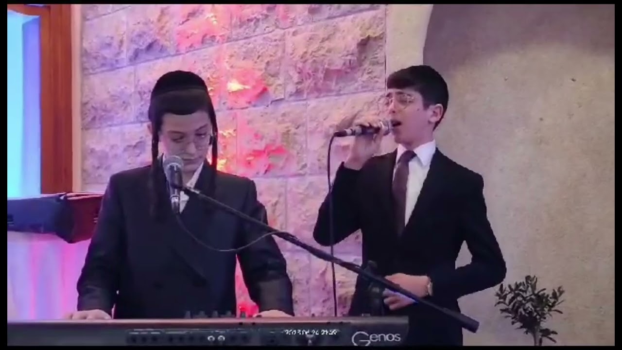 החזן הצעיר מוישי ברזל ובחור הפלא בנצי קלצקין שרים ביחד
