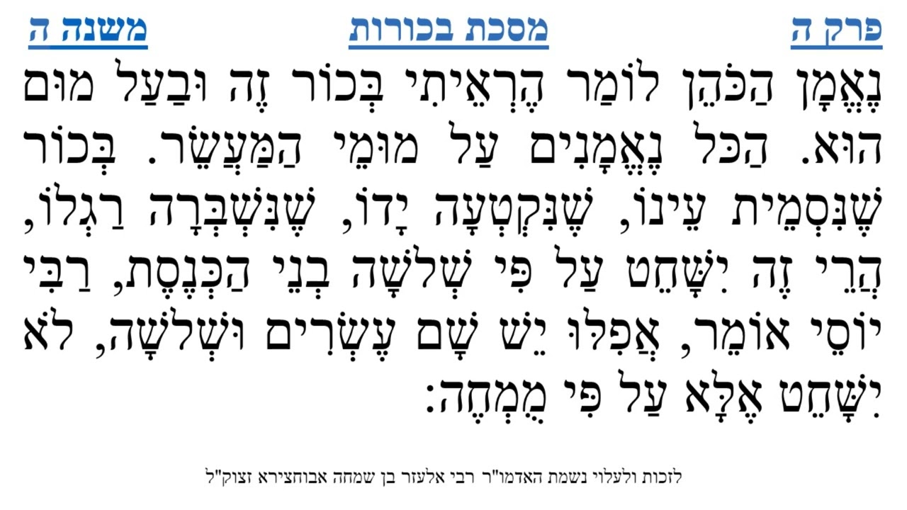 צפייה ישירה ב-YouTubeמסכת בכורות פרק ה משנה ה