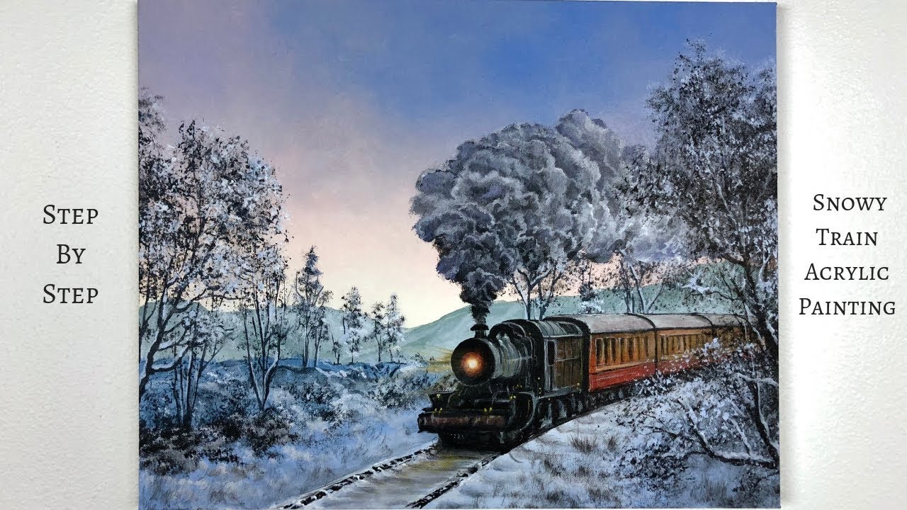Snowy Train STEP by STEP Acrylic Painting (ColorByFeliks)