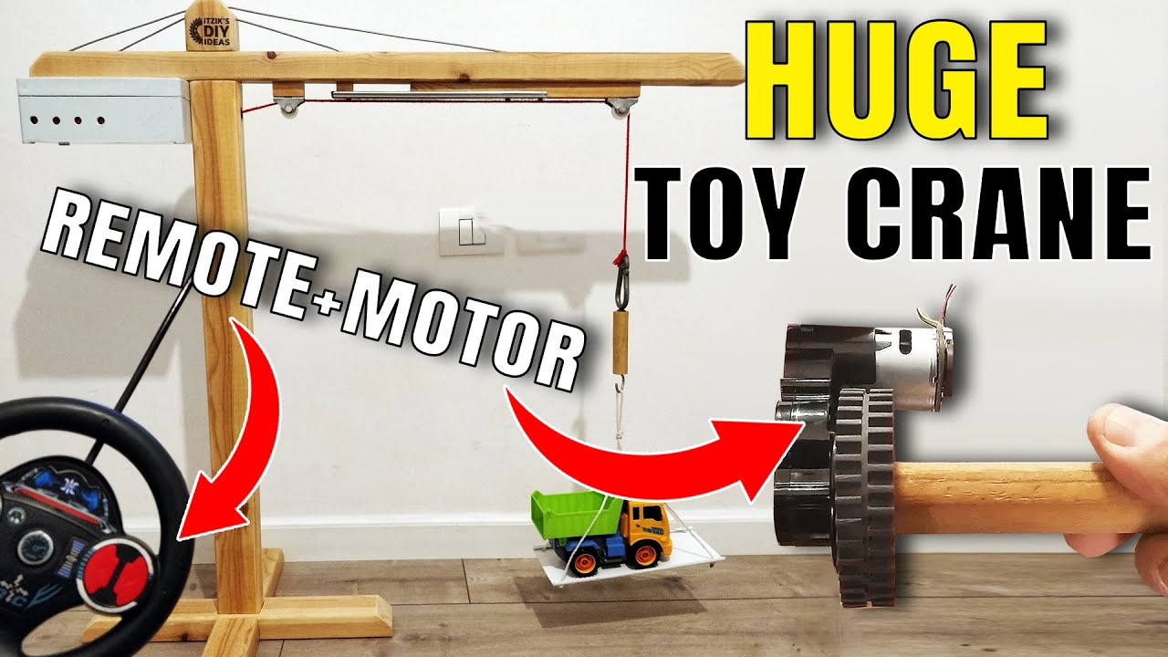 Huge Wooden Toy Crane DIY (Part #2 - Electronics & Tests) Motor + Remote Control + Magnet | XDIY Full description including the electronic scheme (important to read), here - https://www.instructables.com/id/Powerful-Huge-Wooden-Toy-Crane-DIY-With-Motor-Remo If you missed part 1 of the crane project (Woodworking), you can watch it here - https://youtu.be/YpdKTA-FbfA Electronics Mechanism - Full Scheme & Description: ######################################################## * Please read the full explanation to avoid risk! * The reason for the complexity, was due to the different voltage inputs that each part I had: ** Power adapter: 12v ** Led Strip: 12v ** Motor: 15v ** Remote car receiver board: 4.5v * There was no issue with the providing 12v for the 12v led strip and the 15v motor. * The problem started with the remote car receiver board. The receiver PCB was on the remote car, it was operated by 4.5v batteries. * I'm not a electronics pro, but I assumed that connecting this board to the 12v adapter, would burn it. * I thought of a way to operate the board with another smaller voltage adapter and only the motor with the 12v, but I needed additional parts for this connection, maybe a relay, or other options which I couldn't reach during the lock down. I guess, you can also find receivers with different voltage input. * I decided to take the risk. I put my safety glasses, and connected the 12v power adapter directly to the receiver input. After about 5 seconds, the capacitor that was connected on the board, was blown and flew like a rocket... I thought that this is the end of this board... * Anyway, I connected one of its outputs, to my DC motor and tried to operate it. Guess what? It worked. * And it's still working after 2 months, without getting hot. * So, what was this capacitor for? If you can share your knowledge on the comments, I would love to learn. * Anyway, I don't recommend to make what I did. Find the correct components and use them. * Now, you can look at the scheme picture and understand the connections I made: * https://content.instructables.com/F1A/0T7C/KBHXVFPR/F1A0T7CKBHXVFPR.LARGE.jpg ######################################################## This project started about two months ago, during the Corona virus lockdown. We were about one month in lockdown already, and we knew it's the best time to create something (like many others did during this period) I asked my kids what would they like to build together. They said that I promised to make a crane long time ago... So - we decided to try to build a crane, from the limited materials that we had at home. I have some boxes with many parts which I saved for years, and it helped in this case. It took about 5 days to make it. I named this project - "Corona Crane". Is there anything better than "leveraging" your morale by building a crane, during the lockdown? :) Note: Since this project was pretty long and contained many steps and some domains, I decided to divide its video into 2 parts: Part 1 - Crane's woodworking + mechanism + accessories. Part 2 - Crane's electronics + mechanism (motor + remote control) + test results - leverage of different items and weights. The tools & accessories that I'm using - https://www.itzikdiy.com/tools-list?m=1 0:00 Intro 0:33 Electronics & Mechanism 5:23 Test Results #xdiy #xdiy_with_itzik #itzikdiy 🔔 Make sure to subscribe and click the bell, so you won't miss any new released video! 🔔 https://www.youtube.com/channel/UCqBRZfuCJIzWes2MhI9k-3g?sub_confirmation=1 Thanks! Credits: * Construction Tools Image Designed by macrovector / Freepik - http://www.freepik.com - - - - - - - - - - - - - - - - - - - - - - - - - - - - - - Music Provided by MU : https://goo.gl/jj2d3u Track: Beyond - [MU release] Track link: https://youtu.be/NNa0_3cqzpo - - - - - - - - - - - - - - - - - - - - - - - - - - - - - -