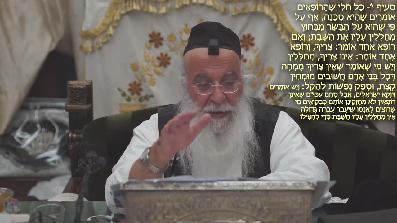 589הלכה יומית סימן שכ"ח- דין חולה בשבת (סעיף ח'-י"ג) הרב בניהו שמואלי