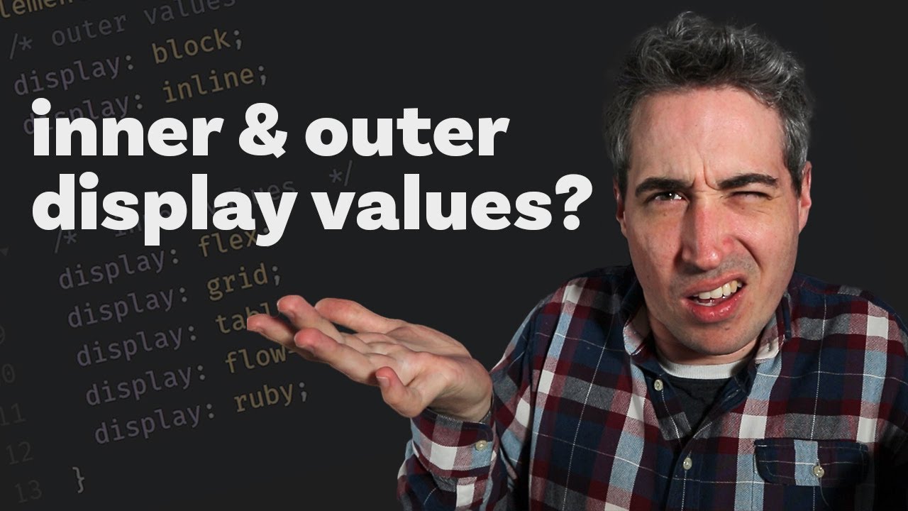 CSS Demystified: https://cssdemystified.com/ In CSS, there are inner and outer display values and with the newest specification, we can actually set two values, declaring both the inner and outer value! In this video I look at what it even means to have an inner and outer value, the implications of it, and more. Specification: https://www.w3.org/TR/css-display-3/#the-display-properties #css -- Come hang out with other dev's in my Discord Community 💬 https://discord.gg/nTYCvrK --- Keep up to date with everything I'm up to ✉ https://www.kevinpowell.co/newsletter --- Help support my channel 👨🎓 Get a course: https://www.kevinpowell.co/courses 👕 Buy a shirt: https://teespring.com/stores/making-the-internet-awesome 💖 Support me on Patreon: https://www.patreon.com/kevinpowell --- My editor: VS Code - https://code.visualstudio.com/ --- I'm on some other places on the internet too! If you'd like a behind the scenes and previews of what's coming up on my YouTube channel, make sure to follow me on Instagram and Twitter. Instagram: https://www.instagram.com/kevinpowell.co/ Twitter: https://twitter.com/KevinJPowell Codepen: https://codepen.io/kevinpowell/ Github: https://github.com/kevin-powell --- And whatever you do, don't forget to keep on making your corner of the internet just a little bit more awesome!