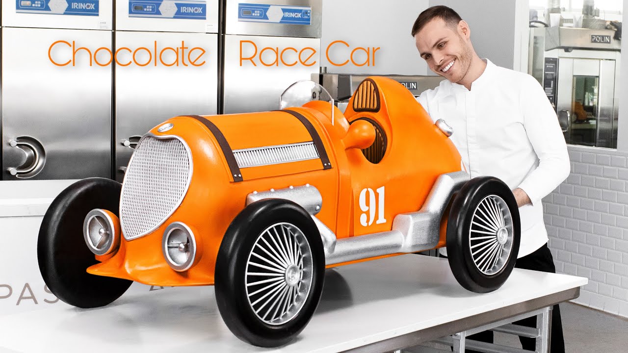This super fun old school looking race car took me so long! 6 days in the making, it is 60inch long and 40 inch tall for an overall of 50lbs of dark chocolate. What's your favorite part? 🏎 🏁 If you are looking to learn my techniques and recipes you can enroll to one of the long term programs by applying through my website : https://thepastryacademy.com/