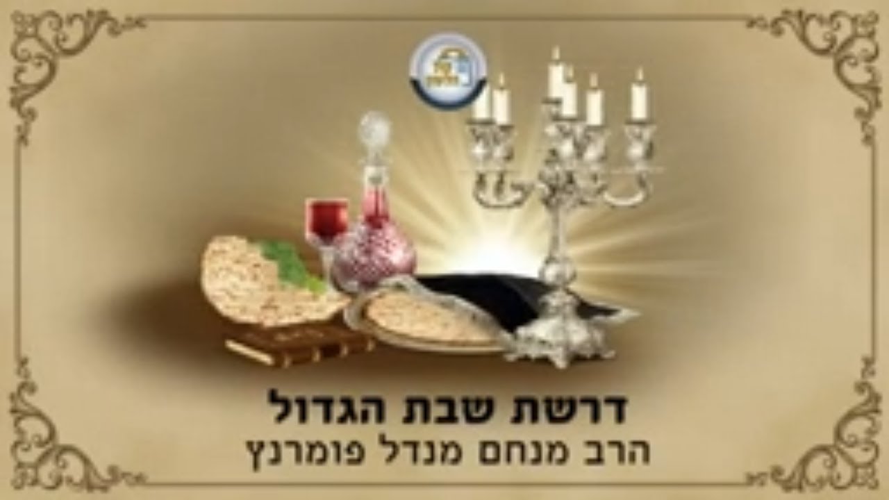 דרשת שבת הגדול - (פרשת צו תרומת הדשן) הרב מנחם מנדל פומרנץ פסח תש"פ