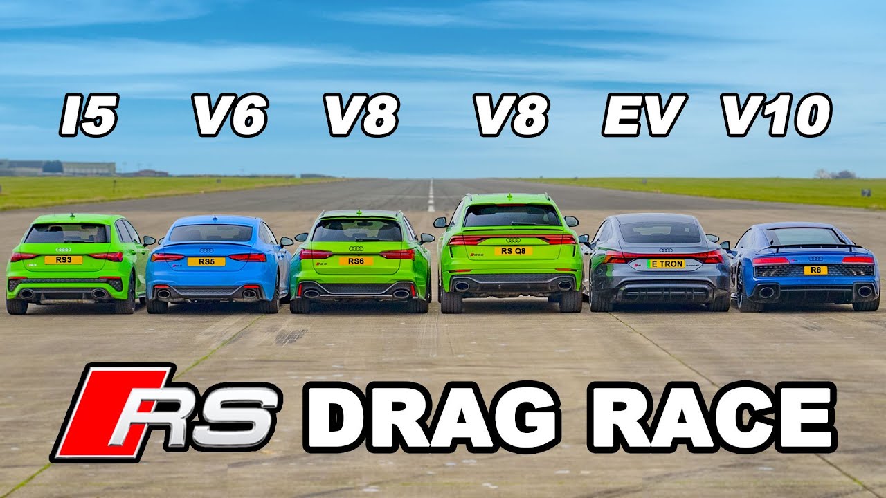 Need help buying your next car? Click the following link and my team and I will help you choose your ideal car at a fair price - from Mat Watson! http://bit.ly/-Help-Me-carwow ............................................................. Check out V10_GO: https://bit.ly/V10-Go-2201 Check out F1__German: https://bit.ly/f1-german-2201 Welcome to the greatest Audi drag race of all time! We’ve brought together SIX high-performance Audis to go head-to-head over the quarter-mile to see which is the must-have Audi RS in 2022. But can you pick a winner? The most expensive car here is the R8 V10 Performance, packing a 5.2-litre naturally-aspirated V10 that can produce 620hp & 580Nm of torque. But don’t be fooled into thinking the biggest price tag guarantees it a victory! After all, the RS e-tron GT may cost £35,000 less, but it’s still the most powerful car here! Its two electric motors combine to put down 637hp & 830Nm of torque! Or perhaps the newest car, the Audi RS3 Sportback, could spring a surprise? Sure it’s only packing a 2.5-litre 5 cylinder that can put down 400hp & 500Nm, but could it beat some of its bigger brothers to the finish line? There’s only one way to find out… LET’S RACE! Mat's Audi RS video choice: https://bit.ly/Mats-Audi-RS-Video-Choice HUGE Audi RS Saving: https://bit.ly/HUGE-Audi-RS-Saving ............................................................. Instagram – http://www.instagram.com/carwow Tiktok - https://www.tiktok.com/@carwow Facebook – http://www.facebook.com/carwowuk Twitter – http://www.twitter.com/carwowuk Sign Up to our Newsletter – http://bit.ly/carwow-Newsletter Awkward haggling is a thing of the past with carwow. Choose your perfect car with our configurator tool and let the country’s best dealers compete over you. Compare the five best offers by price, location and dealer ratings and choose the one that’s right for you – no hassle, no haggling, just a great deal. Oder auch in Deutschland Geld beim Autokauf sparen – http://bit.ly/carwow-DE Visita nuestra página web para saber cuánto te puedes ahorrar en tu nuevo coche – http://bit.ly/carwow-ES