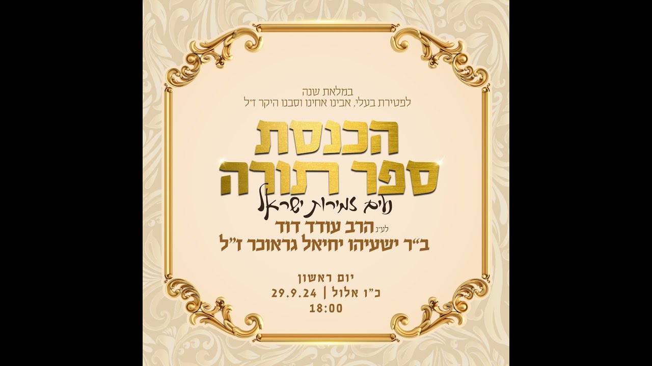 שידור חי מהחגיגה הגדולה לכבוד התורה, שמחת הכנסת ספר תורה מהודר שנכתב לעילוי נשמת נעים זמירות ישראל, הרב עודד דוד (דדי) גראוכר ז"ל