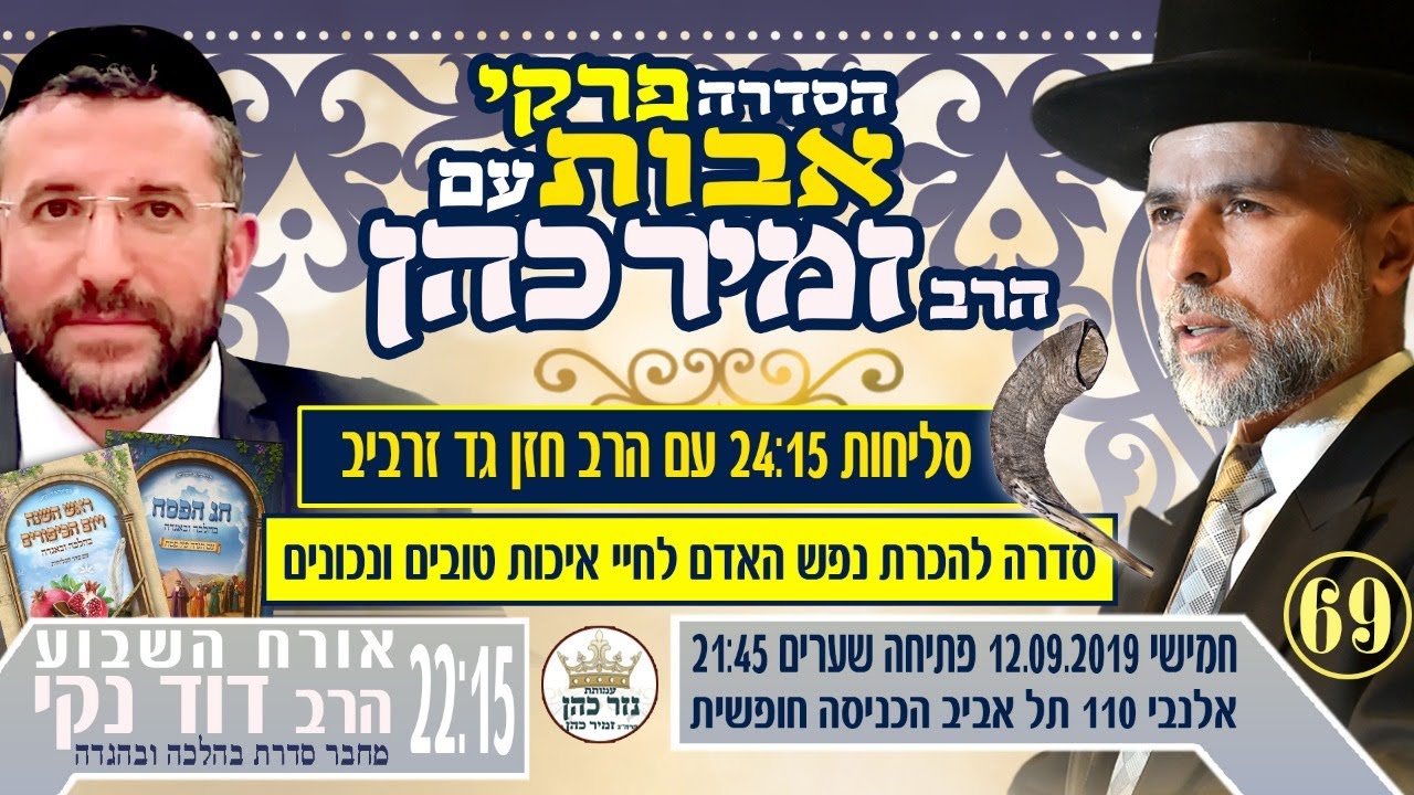 שיעור וסליחות בתל אביב עם מורנו הגאון הרב זמיר כהן שליט"א בסדרה 'פרקי אבות' 69 בהשתתפות הרב דוד נקי