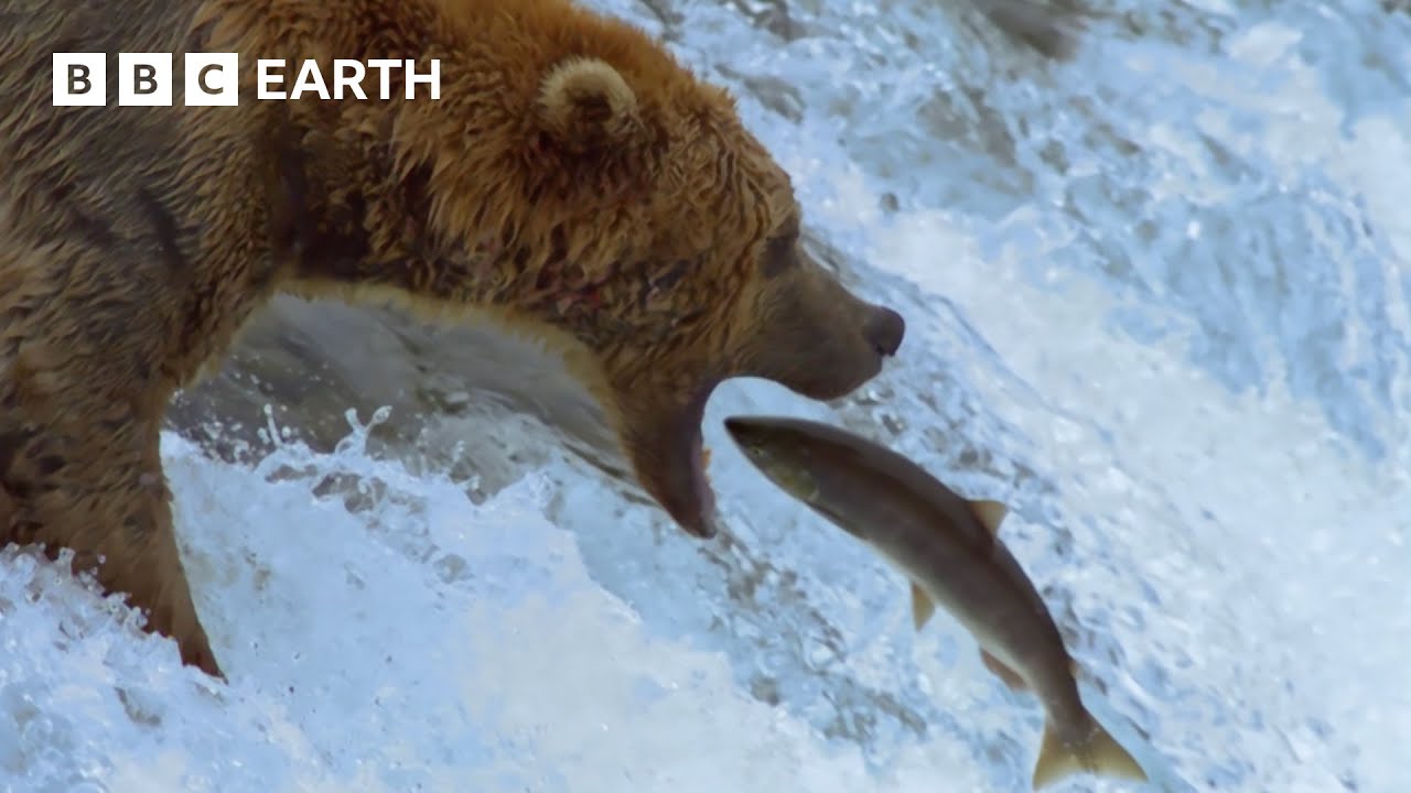 Every autumn, the heavy rains means the river overflows and salmon are able to travel upstream to return to their birthing place. This also means a fantastic feast for a group of grizzlies. Subscribe: http://bit.ly/BBCEarthSub #Bears #AnimalHunt #BBCEarth Watch more: Best of BBC Earth 🌍 https://bit.ly/BestOfBBCEarth Best Animal Fights 🥊 https://bit.ly/BestAnimalFights Videos over 10 minutes ⏰ https://bit.ly/3SHJCEJ Planet Earth III 🌍 https://bit.ly/PlanetEarthIIIPlaylist Frozen Planet II ❄️ https:/bit.ly/FrozenPlanetIIPlaylist Blue Planet II in 4k 🌊 https://bit.ly/BluePlanetII4kPlaylist Taken from 'Earth's Great Seasons' (2016) Every year, spectacular seasons transform our planet. These beautiful stand alone films explore the unique opportunities and challenges posed by each season. Spring brings new life, but it's also a dash to wake up and get ahead of everyone else. Summer is a time of long days and glorious abundance. But the living isn't always easy when the temperatures rise. Autumn brings the world's most spectacular transformations. It's also the last chance to breed, to grow up, to stock up before the cold returns. And during winter - the most magical, dramatic season of all - animals find inventive ways to survive. Narrated by Andrew Scott. Welcome to BBC EARTH! The world is an amazing place full of stories, beauty and natural wonder. Here you'll find 50 years worth of entertaining and thought-provoking natural history content. Dramatic, rare, and exclusive, nature doesn't get more exciting than this. This is a commercial page from BBC Studios. Service information and feedback: http://bbcworldwide.com/vod-feedback--contact-details.aspx