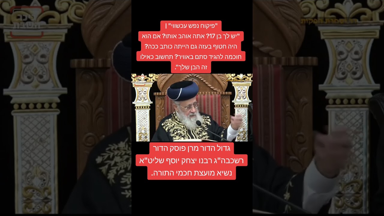 צפייה ישירה ב-YouTube"יש לך בן 17? אתה אוהב אותו? אם הוא היה חטוף בעזה גם הייתה כותב ככה?" גדול הדור מרן שליט"א.