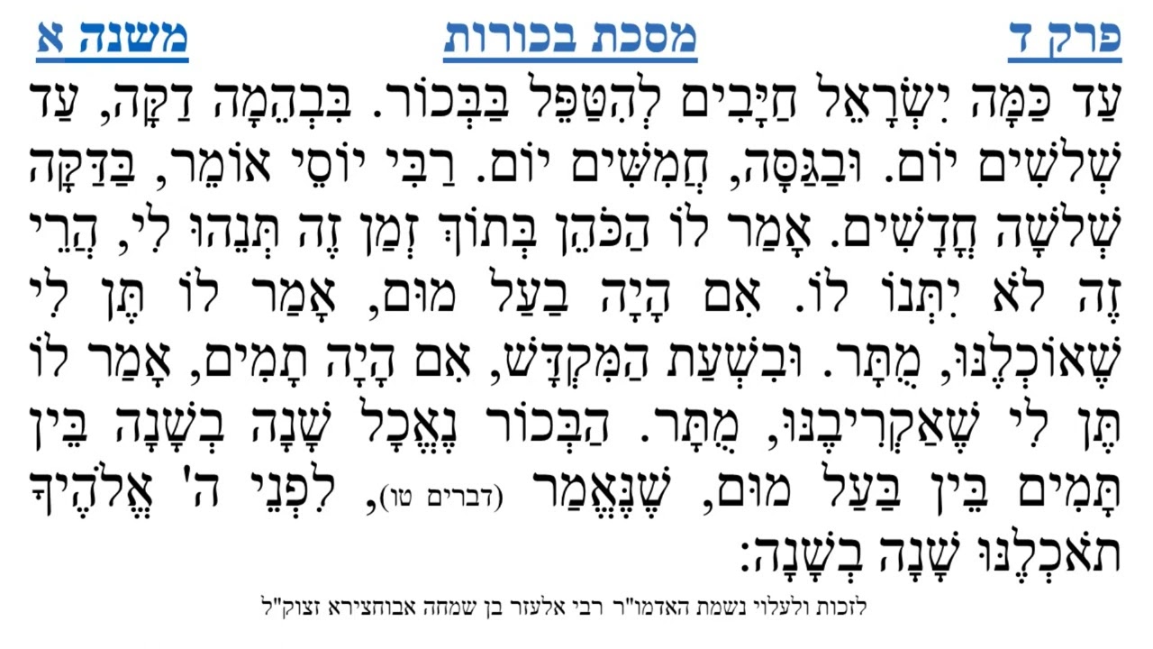 צפייה ישירה ב-YouTubeמסכת בכורות פרק ד משנה א