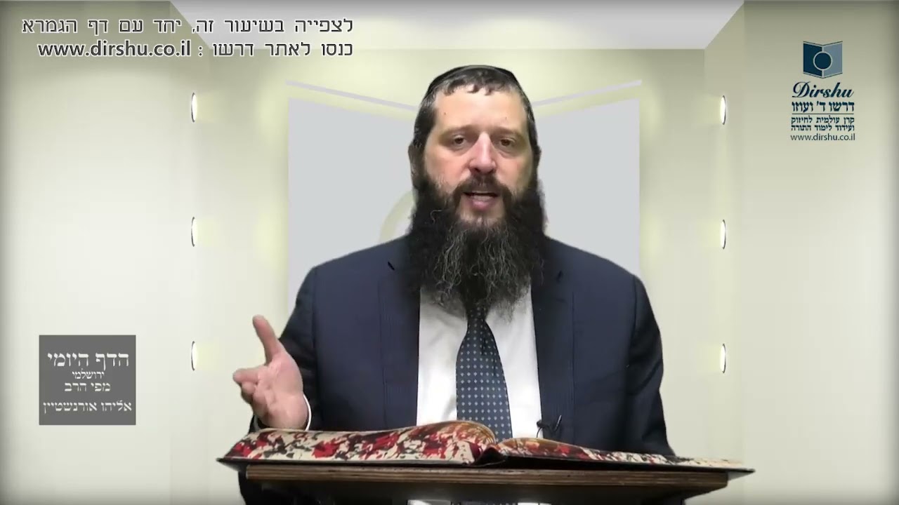 דף היומי - שיעורי הדף היומי בגמרא תלמוד ירושלמי מסכת שביעית מבית "דרשו" עם הרב אליהו אורנשטיין שליט"א, הדף יומי קצר וישיבתי לשיעורים נוספים באתר דרשו: http://www.dirshu.co.il/
