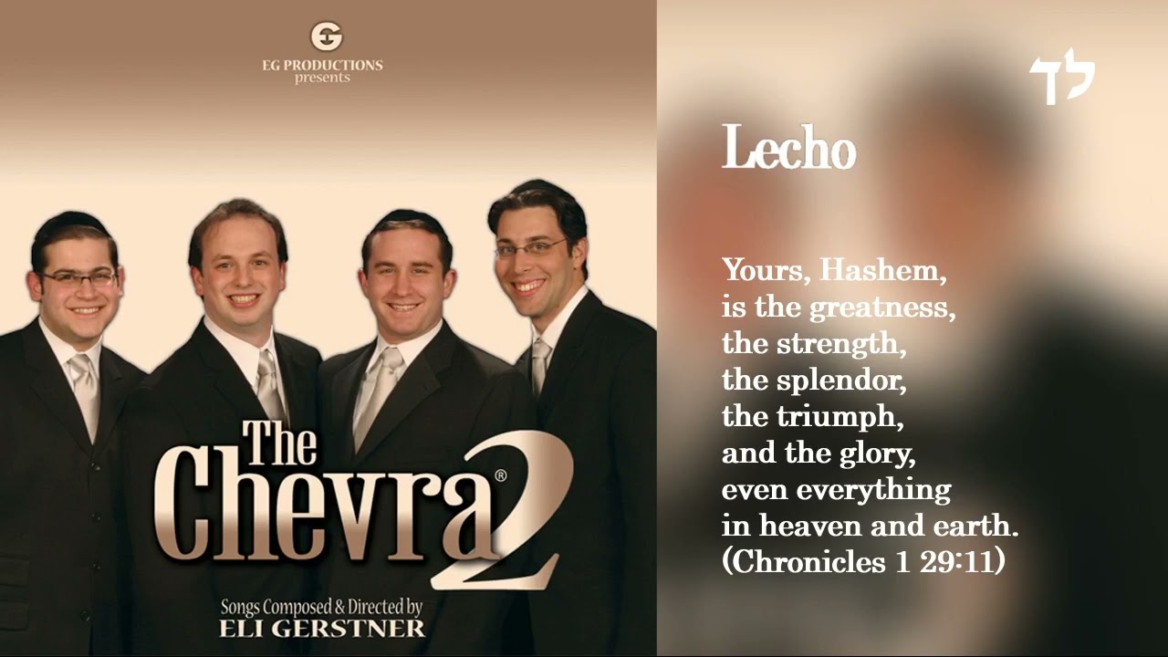Here's links to buy the Album (Available as a download or CD): https://egproductions.net/chevra-2-album Itunes: https://music.apple.com/us/album/the-chevra-2/1606100642 "L'cho" The Chevra Composed & Produced by: Eli Gerstner Arranged by: Eli Yonah & Eli Gerstner Vocals Recorded @ EG Studios by: Eli Gerstner Mixed @ Creative Studios by: Eli Yonah Mastered @ Gater Music by: Larry Gates A”H ►Follow The Chevra online: Instagram: @chevragroup Facebook: /thechevragroup Twitter: /chevragroup Website: TheChevra.com For More Information About The Chevra: Please Call EG Productions @ 718-853-9403 or email us info@EGProductions.net © Copyright Eli Gerstner 2003-2022. All Rights Reserved.
