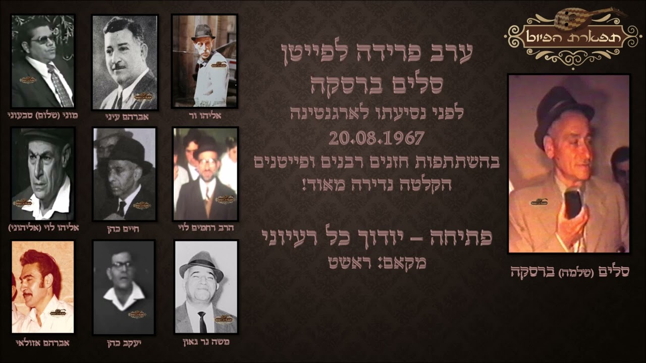 צפייה ישירה ב-YouTubeפתיחה יודוך כל רעיוני החזן סלים ברסקה ערב פרידה לפייטן סלים ברסקה מקאם ראשט 20.8.1967 ווקאלי