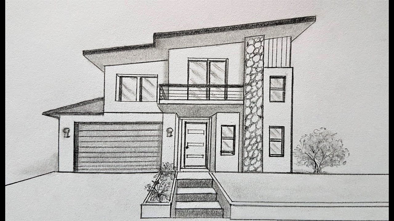 This video shows how to draw in one point perspective easy, how to draw a simple modern house, shows detail step by step in perspective drawing.