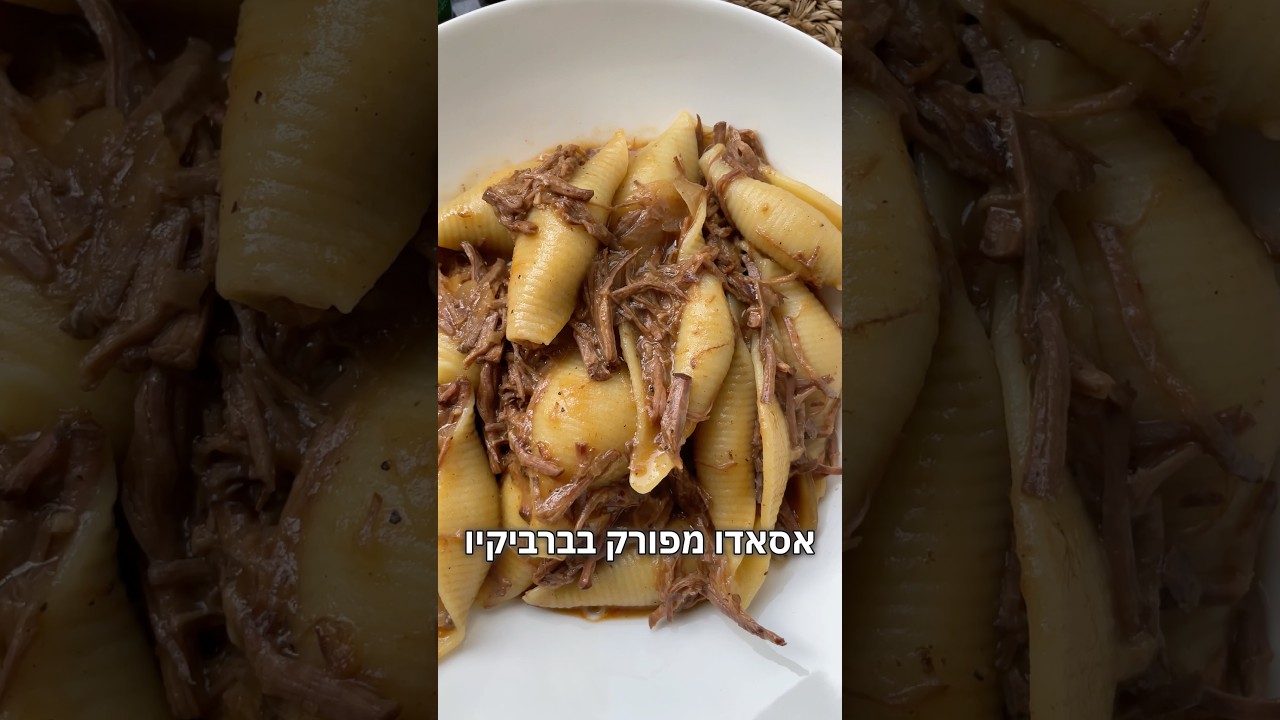 הכל בסיר אחד בשר מפורק אסאדו עם פסטה צדפים גדולות ברוטב ברביקיו שום ודבש 🍯 🧄