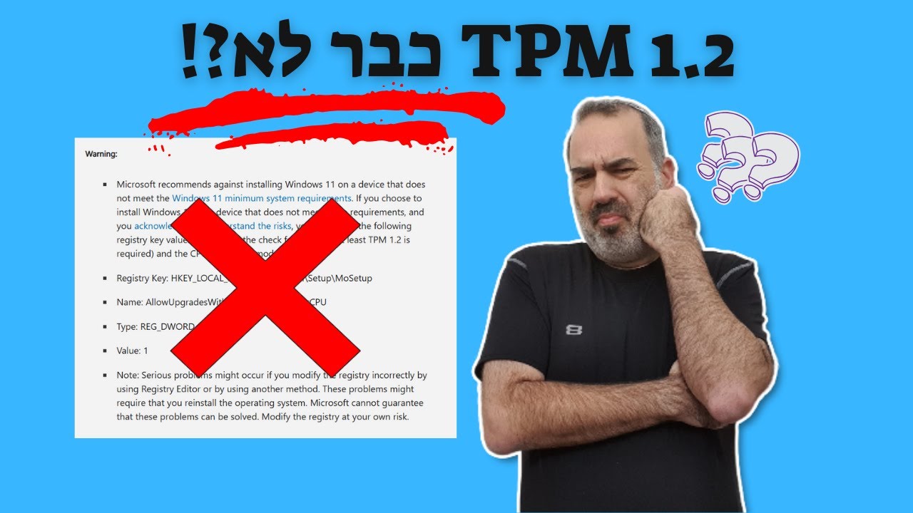 אחרי שווינדוס 11 יצאה לאויר ויצרה תקדים של חומרה שאינה נתמכת על ידי מערכת ההפעלה החדשה (בזמנו), מיקרוסופט נתנה לנו פירור וצירפה הוראות להתקנת ווינדוס 11 על מחשב עם שבב TPM 1.2 בלבד, במקום TPM 2.0. רק מה? מסתבר שלאחרונה מיקרוסופט הסירה את ההנחיות האלה. אתם שואלים למה? גם אני... העמוד הנוכחי: https://support.microsoft.com/en-us/windows/ways-to-install-windows-11-e0edbbfb-cfc5-4011-868b-2ce77ac7c70e העמוד המקורי (גרסת 12 לדצמבר 2024): https://web.archive.org/web/20241212193416/https://support.microsoft.com/en-us/windows/ways-to-install-windows-11-e0edbbfb-cfc5-4011-868b-2ce77ac7c70e ---- 🔻 איפה אפשר למצוא אותי🔻 דיסקורד: https://discord.gg/AjMTSdvfQd קבוצת דיון בטלגרם: https://t.me/MyTechDeskGroup קבוצת פייסבוק: https://www.facebook.com/groups/mytechdesk וואטסאפ: https://whatsapp.com/channel/0029VaHGXNT7T8bP9V49L51Z 🔻דרכים לתמיכה בערוץ🔻 תרומה דרך פייפאל: https://bit.ly/3SCaPYa קנו לי כוס קפה (או כמה כוסות): https://bit.ly/3edwdEb דרך נוספת לתרום: https://ko-fi.com/mytechdesk תרומה דרך סטרים אלמנטס: https://bit.ly/3Cd88Wb 🔻עמלה קטנה לערוץ אם תקנו דרך הלינקים האלה🔻 KSP: https://ksp.co.il/item/F9819AX&homepage Amazon: https://amzn.to/2HNmeoA Ali Express: https://bit.ly/3jXLTJq Banggood: https://bit.ly/3jRjmFr הבהרה: כל המוצג בסרטון הינו לטובת הדרכה בלבד. אינני נושא באחריות לכל מקרה של תקלה, וירוס, באג, שבר או כל בעיה אחרת שתיגרם בעקבות נסיון לחקות את פעולות המציג. בנוסף, התוכנות המוצגות בערוץ אינן שייכות למציג ואין לו חלק בכתיבת הקוד שלהן ועל כן אין לו אחריות על כל תקלה שתיגרם בעקבות השימוש בהן. על כן, חלה חובה על המשתמש לבדוק בעצמו את כל הפעולות לפני עשייתן ואין לבוא למציג בטענה כלשהי מעצם ביצוע פעולה בעקבות הסרטון. #MyTechDESK