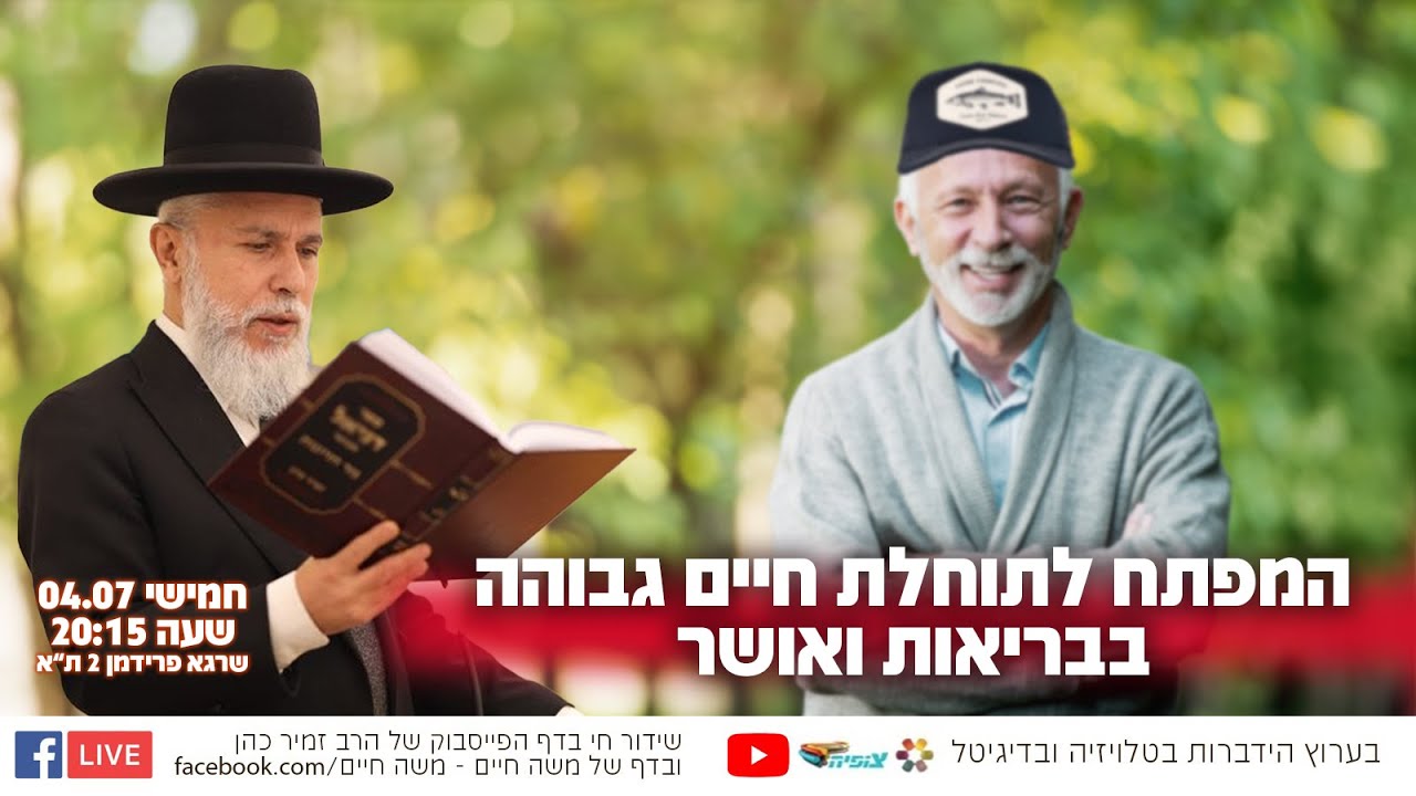 צפייה ישירה ב-YouTubeהמפתח לתוחלת חיים גבוהה בבריאות ואושר | הרב זמיר כהן בשידור חי