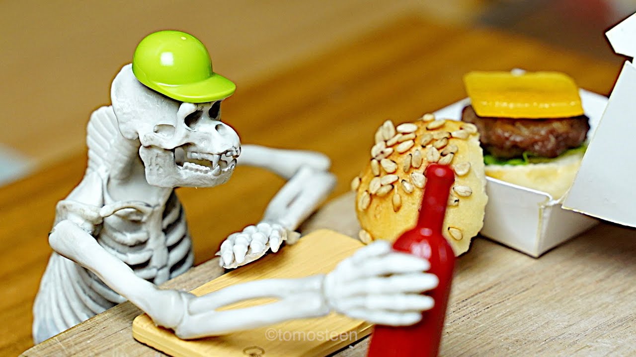 Hello I'm tomosteen. This video is about Mr. Bone making miniature burgers. All ingredients used are real ingredients, but the cooking process is fictional. A Bones Burger vending machine may be just around the corner from you. Thanks for watching my video. Stay tuned for my next video! If you enjoyed it, please like and subscribe to our channel! And let us know what you think in the comments section. Other Mr. Bone videos ・Bone's popcorn https://youtu.be/jLiotL187WY ・Bone's Pizza https://youtu.be/49Nb1U1vLhg ・Bone's Rice Cake https://youtu.be/qawuML1KlNo ・Bone's Granola Bars https://youtu.be/9DhN_cdpHkU