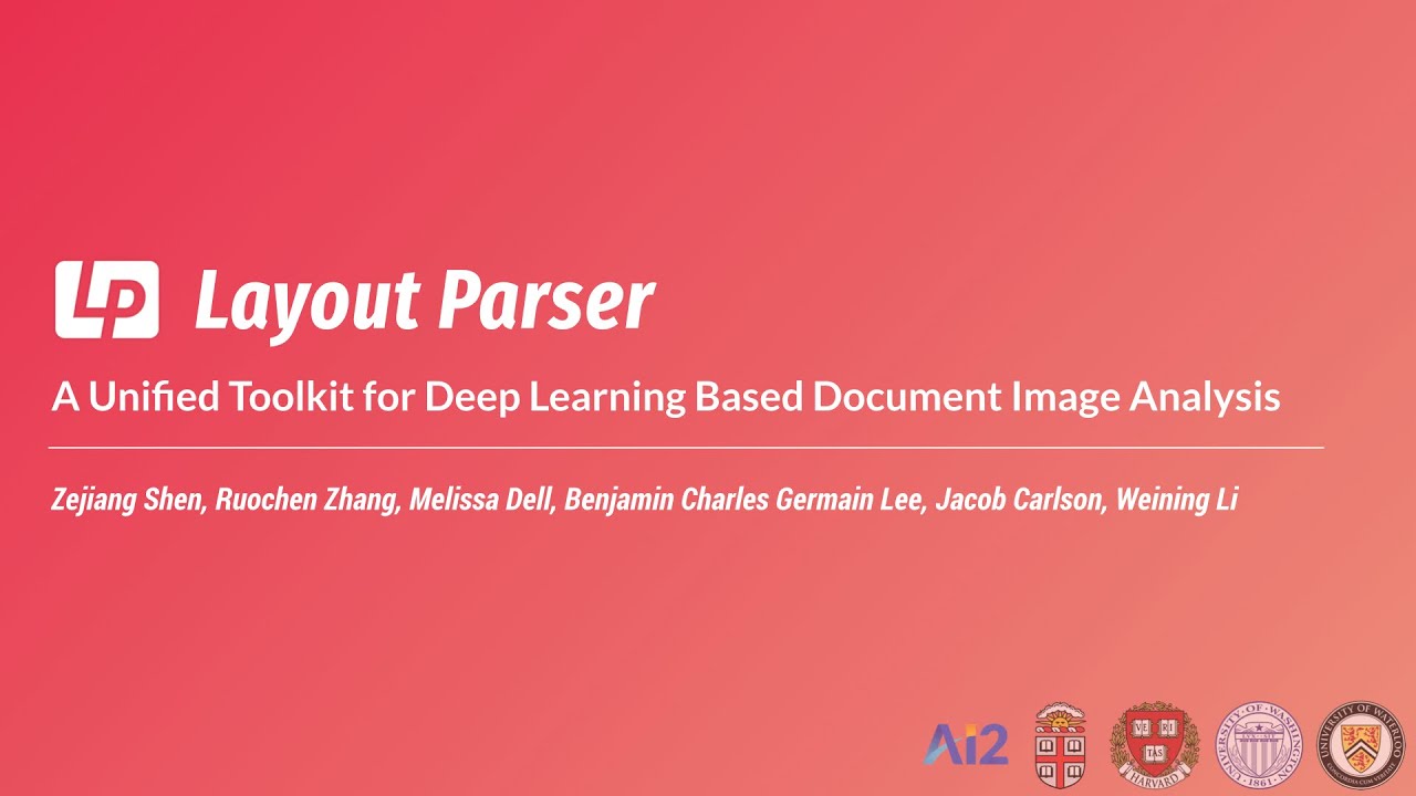 0:00 Introduction 0:08 Motivation 2:24 Demo 3:20 Design & Implementation 3:40 Design & Implementation - Deep Learning Models for Layout Detection 5:35 Design & Implementation - Infrastructure APIs 9:02 Design & Implementation - Model Customization 11:16 Design & Implementation - Open Platform 13:24 Future Work 14:15 Summary 14:40 Layout Parser Community