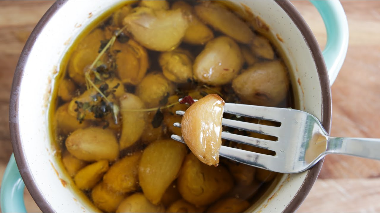 מתכון לשום קונפי ביתי קל להכנה. אם אי פעם יצא לכם לנסות שום קונפי, אתם בטח יודעים כמה זה טעים וממכר. בעזרת שני הדרכים הללו, תלמדו להכין שום קונפי בבית בקלי קלות ולא פחות טוב ממסעדות שאתם סועדים בהן. מה אפשר לעשות עם קונפי שום אתם שואלים? ניתן להוסיף לתבשילים, לפסטות, לסנדוו'יצים, סלטים ועוד. מתכון כתוב מלא: https://www.thecookingfoodie.co.il/recipe/%d7%a7%d7%95%d7%a0%d7%a4%d7%99-%d7%a9%d7%95%d7%9d-%e2%80%93-2-%d7%9e%d7%aa%d7%9b%d7%95%d7%a0%d7%99%d7%9d-%d7%a7%d7%9c%d7%99%d7%9d מתכונים נוספים שאתם עשוים לאהוב: לחם תפוח אדמה וגבינה: https://youtu.be/TxxFgmQzQFU פנקייק בצל ירוק: https://youtu.be/F3Z8RggkoZw עוגיות בננה קלות להכנה: https://youtu.be/ZKvQ2p0QRms הצטרפו אליי: אתר מתכונים בעברית: https://www.thecookingfoodie.co.il/ אינסטגרם: https://www.instagram.com/thecookingfoodie/ פייסבוק: https://www.facebook.com/thecookingfoodie/ הערוץ שלי באנגלית: https://www.youtube.com/c/thecookingfoodie/ אתר אינטרנט באנגלית: https://www.thecookingfoodie.com/ מתכון: מצרכים: 8 ראשי שום שמן זית מלח לפי הטעם שבבי צ'ילי אדום לפי הטעם טימין לפי הטעם תבלינים לבחירה: שבבי פלפל אדום/אורגנו/רוזמרין/טימין/מרווה. הוראות הכנה: 1. מקלפים את השום: זה החלק הכי קשה במתכון; מקלפים את השום אחד אחד או מניחים את שיני השום בקערה/מכל גדול ומנערים במרץ במשך 1-2 דקות. חלק מהקליפות יתקלפו וחלק לא. מה שלא התקלף מסירים בידיים. 2. 2 דרכים להכין שום קונפי: באפייה או בבישול. בחרו את השיטה המועדפת עליכם ופעלו לפי ההוראות. 3. קונפי שום על הכיריים: מניחים שיני שום קלופות בסיר קטן-בינוני. מכסים בשמן זית. מבשלים על האש הנמוכה ביותר במשך 30-45 דקות או עד לריכוך וקבלת צבע חום זהוב בהיר. אין להרתיח בשום שלב. ב-5 הדקות האחרונות של הבישול, הוסיפו את התבלינים האהובים עליכם. אני בחרתי בשבבי צ'ילי אדום וטימין. מעבירים לצנצנת ושומרים במקרר. 4. קונפי שום בתנור: מניחים שיני שום קלופות בכלי חסין חום. מכסים בשמן זית, מוסיפים את התבלינים האהובים עליכם. אופים ב-110 מעלות במשך כשעה וחצי או עד לריכוך וקבלת צבע חום זהוב בהיר. מעבירים ושומרים במקרר. 5. הצעות הגשה: מורחים גבינת כמהין על לחם קלוי, מורחים 3 שיני שום ומתבלים בתבלינים. הערות: • אין להרתיח את השמן, אחרת השום ישרף. חשוב לשמור על להבה נמוכה ככל הניתן. • ניתן להוסיף כל תבלין שאוהבים: רוזמרין, טימין, אורגנו, מרווה ועוד. • אל תזרקו את השמן, השמן יכול לשמש לבישול. מוזמנים להצטרף למועדון החברים האקסקלוסיבי של The Cooking Foodie: https://www.youtube.com/channel/UCau6yGBJgwDHZhjyQ48Zgew/join פודיז שנרשמים למועדון החברים מקבלים גישה לתמונות וסרטונים מאחורי הקלעים, מתכונים לפי בקשתכם, הקדשות אישיות וטעימות ממנות שאני מכין!!!
