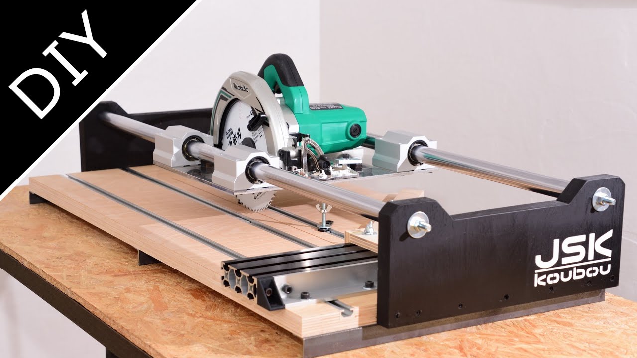 Hello friends! I've made an easy and reasonable 2-in-1 Circular saw slide guide. It works in two ways : Circular saw slide jig" and "Panel Saw:" Download the plan from here. https://jisaku-koubou.com/downloads/sawguide02 【Plan List】 https://jsk-koubou.stores.jp/ Since this circular saw is fixed with a linear shaft, it's very rigid and safe. It works as a panel saw once you place it on the wall, saving your precious workshop space! I've used cheap stainless pipes in this video, but this can be easily upgraded by using linear shafts, turning this into a high-precision and performance jig.