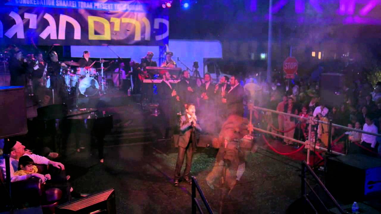 קטע מתוך מופע 'פורים חגיגה' שמקיים ר' שלמה יהודה רכניץ בכל שנה בביתו שבלוס אנג'לס. המופע הופק על ידי דוד פדידה ויוסי רובין והשתתפו בו להקת קינדרלעך, בני פרידמן, מוטי שטיינמץ, עוזיה צדוק ומקהלת 'שירה'. את המופע ליוותה תזמורתו המורחבת של גרשון פריישטט מישראל.