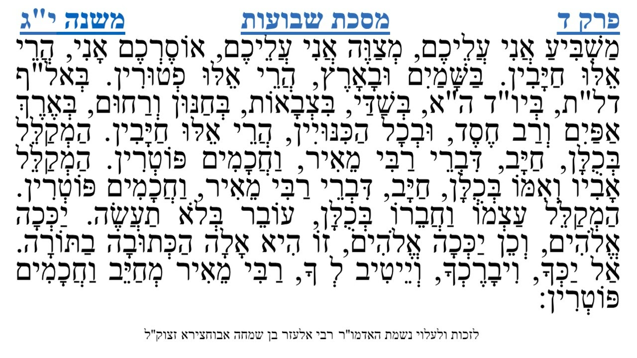 צפייה ישירה ב-YouTubeמסכת שבועות פרק ד משנה י"ג