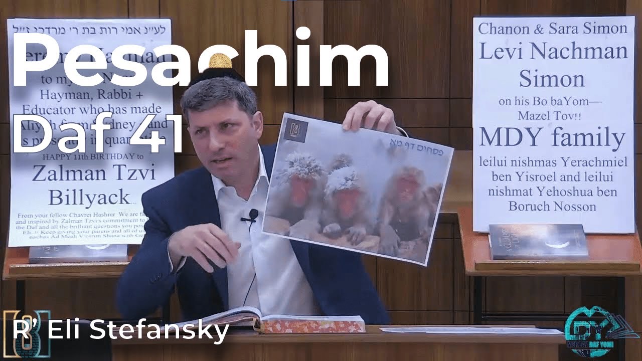 Daf Yomi Pesachim Daf 41 by R’ Eli Stefansky Today's shiur is sponsored by Chanon & Sara Simon: Levi Nachman Simon on his Bo baYom— Mazel Tov!! & Jeremy Hayman: to my son Noam Hayman, Rabbi + Educator who has made Aliyah from Sydney - and is presently in quarantine & The MDY family: leilui nishmat Yerachmiel ben Yisroel and leilui nishmat Yehoshua ben Boruch Nosson & HAPPY 11th BIRTHDAY to Zalman Tzvi Billyack... From your fellow Chavrei Hashiur. We are fascinated and inspired by Zalman Tzvi's commitment to learning the Daf and all the brilliant questions you pose for Reb Eli..!! Keep giving your parents and all of us much nachas Ad Meah V'esrim Shana with Gezunt!! ----------------------------- 00:00 - Are we ready? 00:10 - Good Morning 00:14 - Sponsors 02:58 - Email 04:40 - MDY Kollel siyum 05:07 - Toras Chaim v'ahavat chesed 06:53 - Amud Aleph 30:38 - Amud Beis 43:45 - Have a Wonderful day 43:56 - Tehillim 44:44 - Shmooze _________________________________ Thank you for watching Today's Daf! Have a Wonderful Day!! Go to http://mercazdafyomi.com/ to find out when we are live on Zoom. ZOOM: - zoom.8mindaf.com Please consider Sponsoring our Shiur! https://www.8minutedaf.com/sponsorship/ To receive the Newsletter: - ohrhamercaz.8mindaf.com _________________________________ Download Our App: Google Play Store - android.8mindaf.com App Store - iphone.8mindaf.com _________________________________ Find Us on all the top streaming platforms: Full Daf: 👇Find us on all the big Podcast platforms with the link below👇 Anchor - https://anchor.fm/fulldafyomi YouTube - https://www.youtube.com/user/edive Telegram - https://t.me/DafBrama Torahanytime - https://www.torahanytime.com/#/speaker?l=533 AllDaf - https://alldaf.org/series/daf-yomi-by-rabbi-eli-stefansky/4099 IHeart - https://www.iheart.com/podcast/269-daf-yomi-by-r-eli-stefansk-73538075/ _________________________________ 8-minute Daf: 👇Find us on all the big Podcast platforms with the link below👇 Anchor - https://anchor.fm/8minutedaf YouTube - https://www.youtube.com/channel/UCaO4oFhKPfIvXQgzVoq8cVw WhatsApp - https://bit.ly/397mtDY Telegram - https://t.me/eightminutedaf Torahanytime - https://www.torahanytime.com/#/speaker?l=533 OUtorah - https://www.outorah.org/series/4033 AllDaf - https://alldaf.org/series/4033 Iheart - https://www.iheart.com/podcast/269-8-minute-daf-by-r-eli-stef-73538073/ _________________________________ For all the sheets - https://t.me/DafYomiSheets or sheets.8mindaf.com Our website - https://www.8minutedaf.com/ _________________________________ Contact us at: https://www.8minutedaf.com/contact-us/ dafbrama@gmail.com Come visit at our amazing building - https://g.page/MercazDafYomiRBS?we #its_all_about_the_yomi #Pesachim