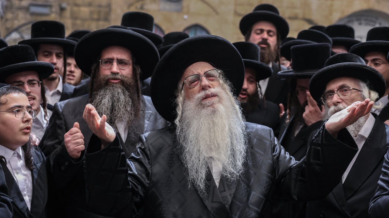 האדמו"ר מצאנז יחד עם חסידיו במעמד מרגש של טקס ההחלאק'ה חלאקה לנינו, שנערך בציון הרשב"י , באתרא קדישא מירון ימים ספורים אחרי ל''ג בעומר תשפ''ה. The Sanz Rebbe, together with his Chassidim, at a moving Upsherin (Chalaka) ceremony for his great-grandson, held at the gravesite of Rabbi Shimon Bar Yochai in the holy site of Meron, just days after Lag BaOmer צילום: דוד כהן. הצילום כפוף לחוק זכויות יוצרים, לכן חל איסור להעתיק או להוריד אותו, וכן להשתמש בו ללא קבלת רשות במפורש ובכתב Photo: David Cohen This photograph is legally protected by law. All and any use of this photo, including downloading or electronically copying, is prohibited unless granted written permission by the owner