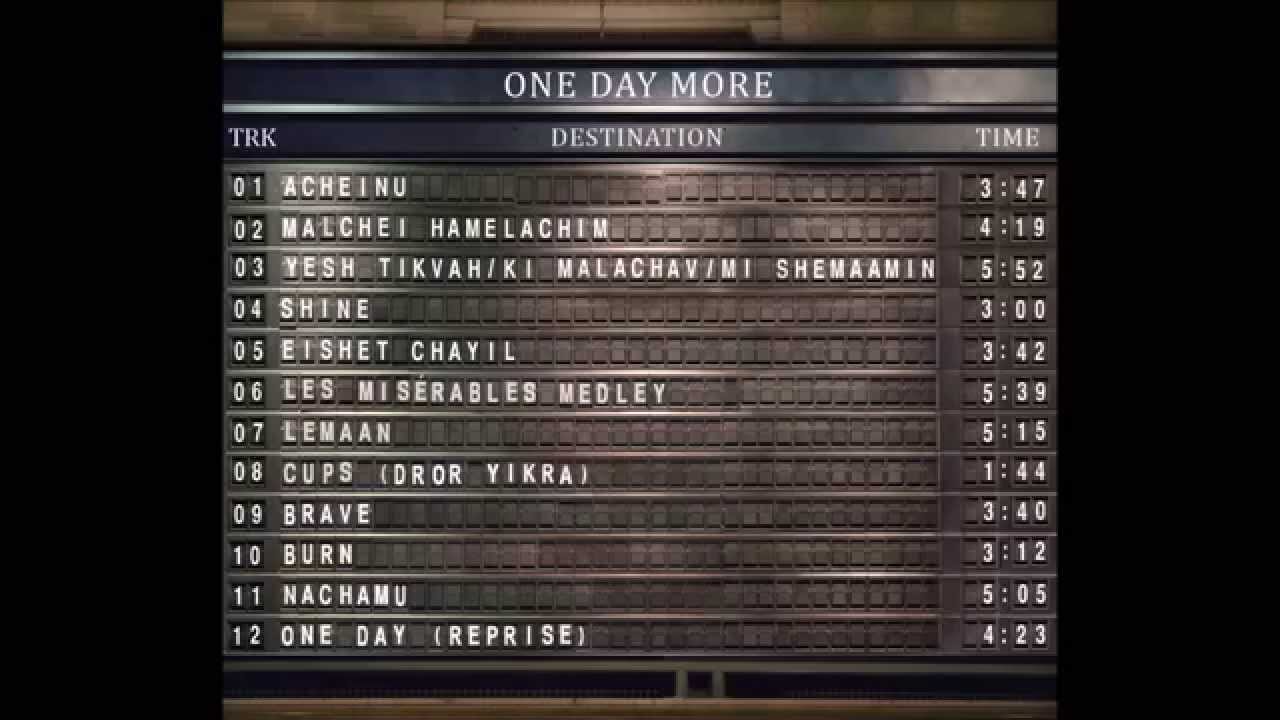 Download "One Day More" on iTunes: https://itunes.apple.com/us/album/one-day-more/id850629361 "One Day" is originally performed by Matisyahu. This and all Maccabeats music is recorded a cappella. http://www.maccabeats.com Bookings: booking@maccabeats.com Tour dates: http://www.maccabeats.com/events/tour-dates Facebook: http://www.facebook.com/maccabeats Twitter: http://www.twitter.com/maccabeats