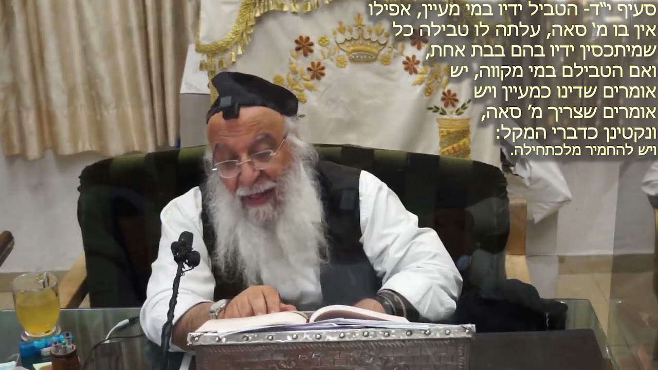 254הלכה יומית סימן קנט- באיזה מים נוטלין הידים, וכיצד יבואו המים על ידיו סעיף יד-יט הרב בניהו שמואלי