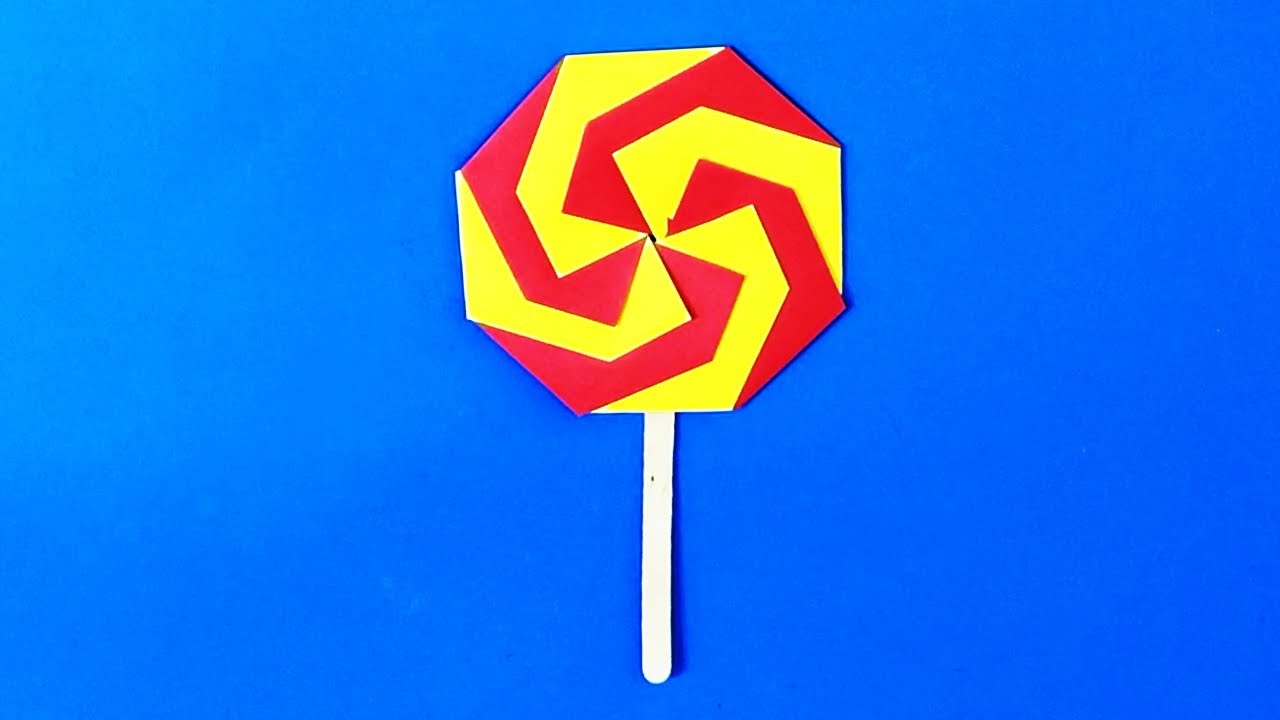 יצירה סוכריה על מקל מנייר. יצירה עם קיפולי נייר והדבקה. #סוכריה #נייר #יצירה