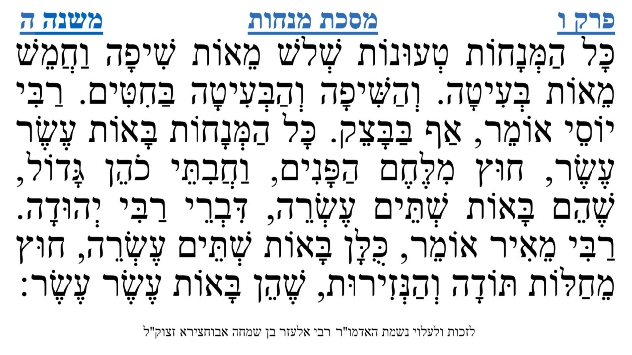 צפייה ישירה ב-YouTubeמסכת מנחות פרק ו משנה ה