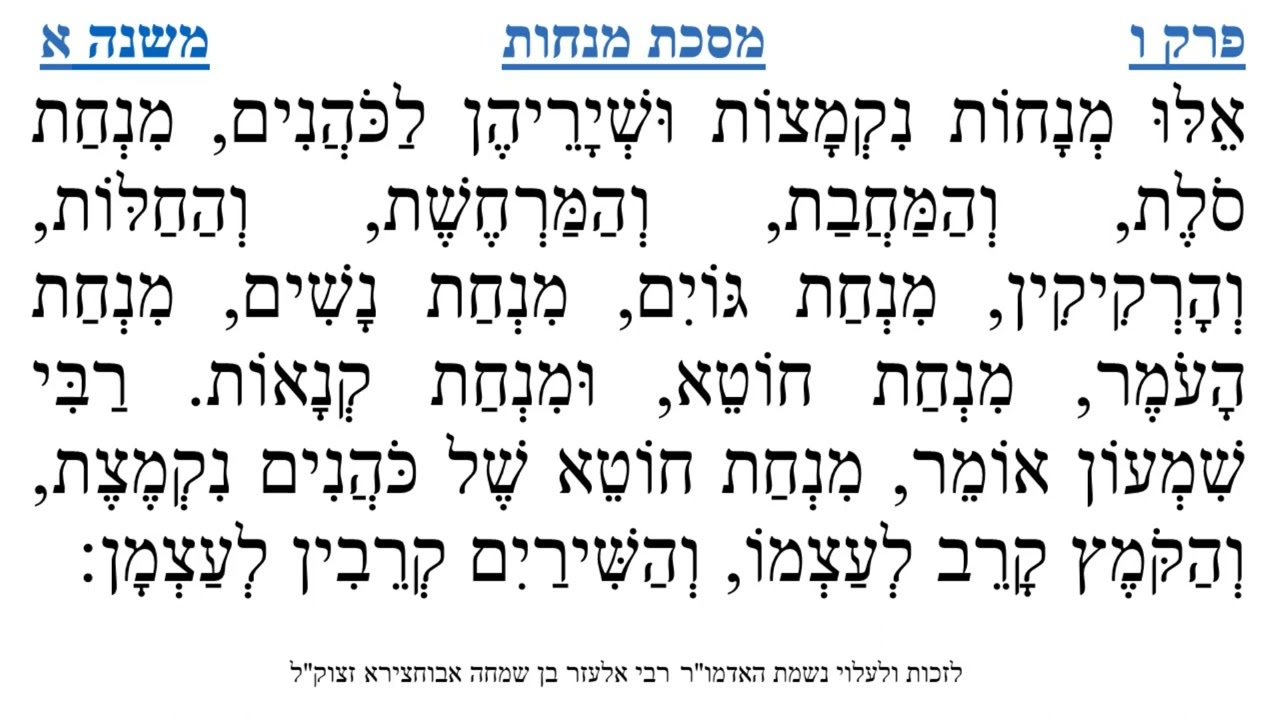 צפייה ישירה ב-YouTubeמסכת מנחות פרק ו משנה א