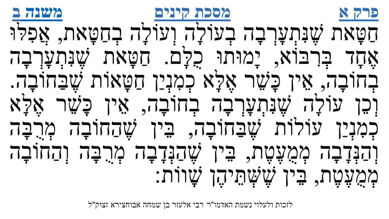 משניות מבוארות נמסרות מפי הרב ישי אבידן הלימוד לזכות ולעילוי נשמת האדמו"ר רבי אלעזר בן שמחה אבוחצירא זכר צדיק וקדוש לברכה לחיי העולם הבא.