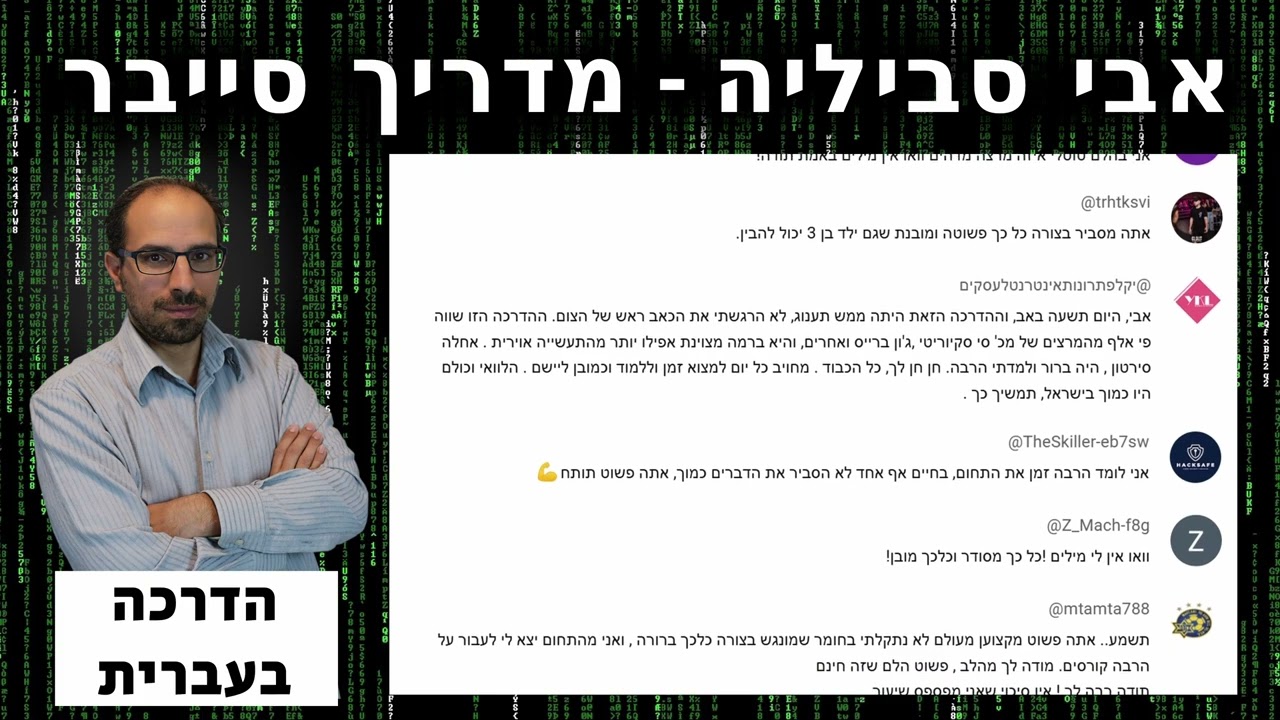 כל אחד יכול להיות האקר, גם אתם, אפילו אם אין לכם רקע במחשבים. בואו תצטרף אלי ונתרגש ביחד מפתירת אתגרי סייבר מטורפים, נבצע תקיפות מדהימות ונפרוץ יחדיו לשרתים, כמובן בצורה חוקית, ואת הכל נעשה בלי לצאת מהבית. אם אתם מוכנים להקדיש חמש שעות כל שבוע ושבוע, אני אקח אתכם איתי יד ביד, משלב אפס, עד שתהפכו למומחים. אם אין לכם את הזמן או שאין לכם רצון פנימי ואמיתי להתרגש מפריצות סייבר, תרדו מזה, כי זה דורש השקעה. מאות תלמידים חדשים מצטרפים אלי לערוץ כל חודש, והתגובות מדהימות, הם עפים על זה. אם אתם מוכנים להשקיע זמן, ויש לכם תחושה שסייבר זה תחום שמדליק אתכם, אני מזמין אתכם עכשיו ללחוץ על כפתור ה subscribe כדי להירשם לערוץ, ולהתחיל מיד מסע מרתק ומרגש, שנעבור אותו יחדיו. אני מחכה לכם.