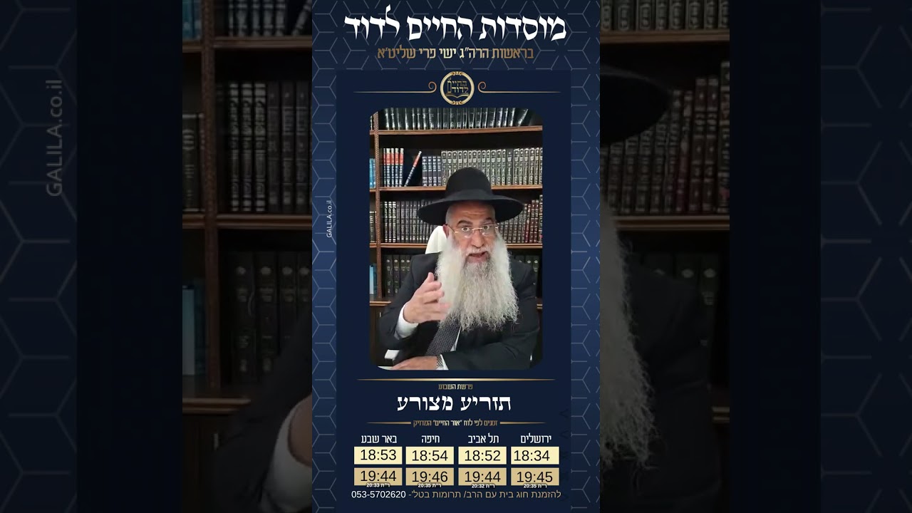 🕊️ הרב ישי פרי שליט״א |השיעור השבועי | פרשת תזריע מצורע תשפ״ו