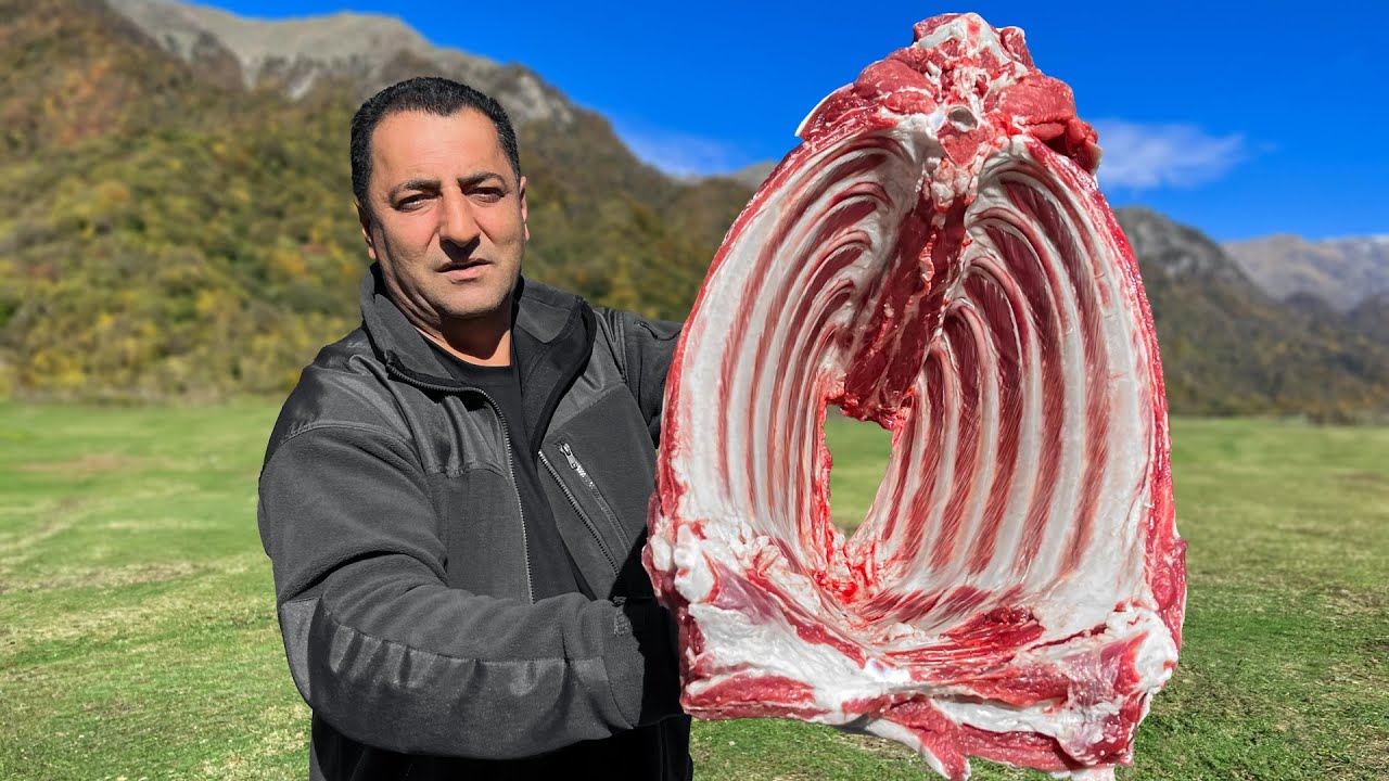 An Incredible Dish Cooked Inside The Ribs! Life in the Mountains of Azerbaijan